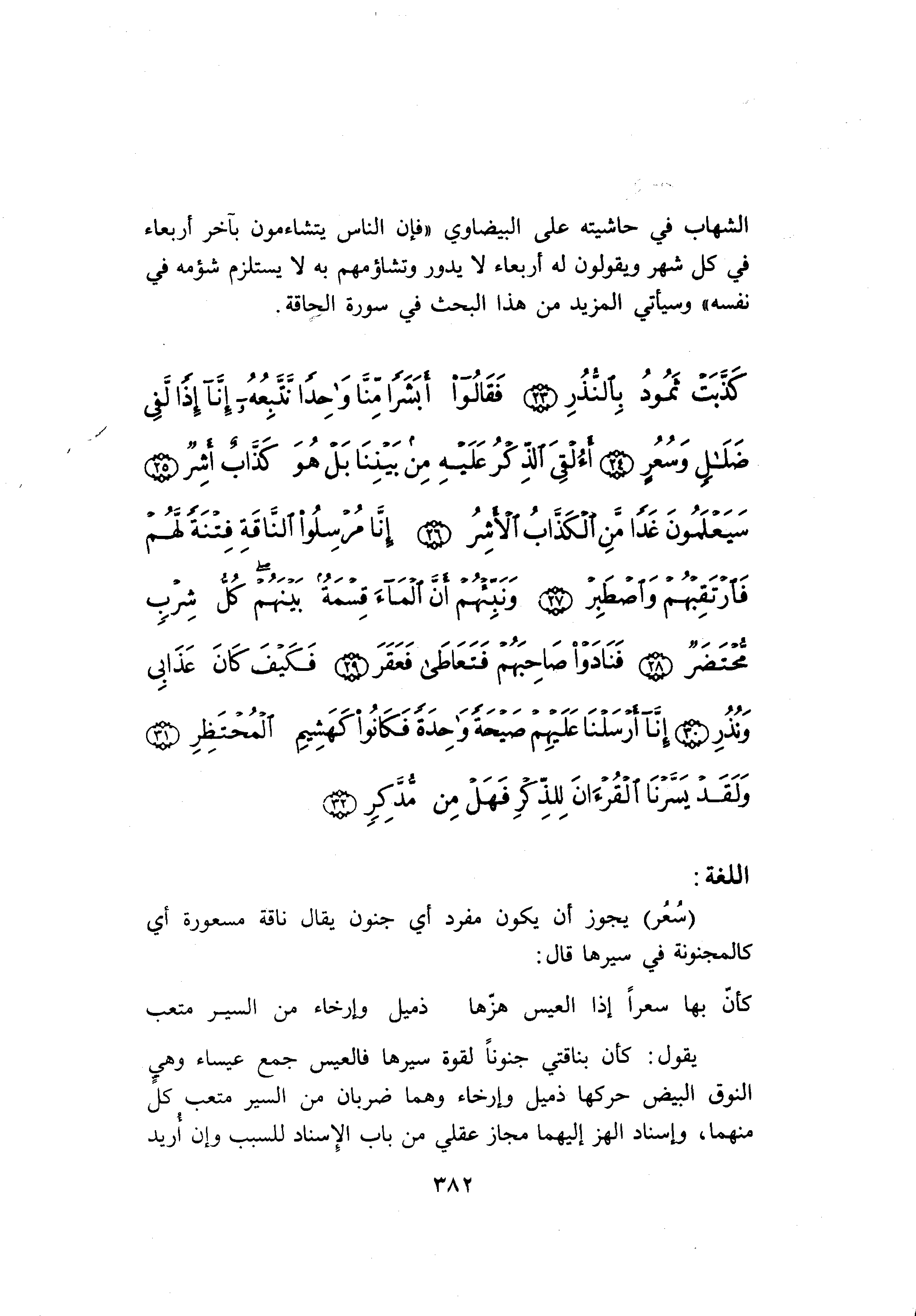 (سُعُرٍ) يجوز أن يكون مفرد أي جنون يقال ناقة مسعورة أي كالمجنونة في سيرها قال: