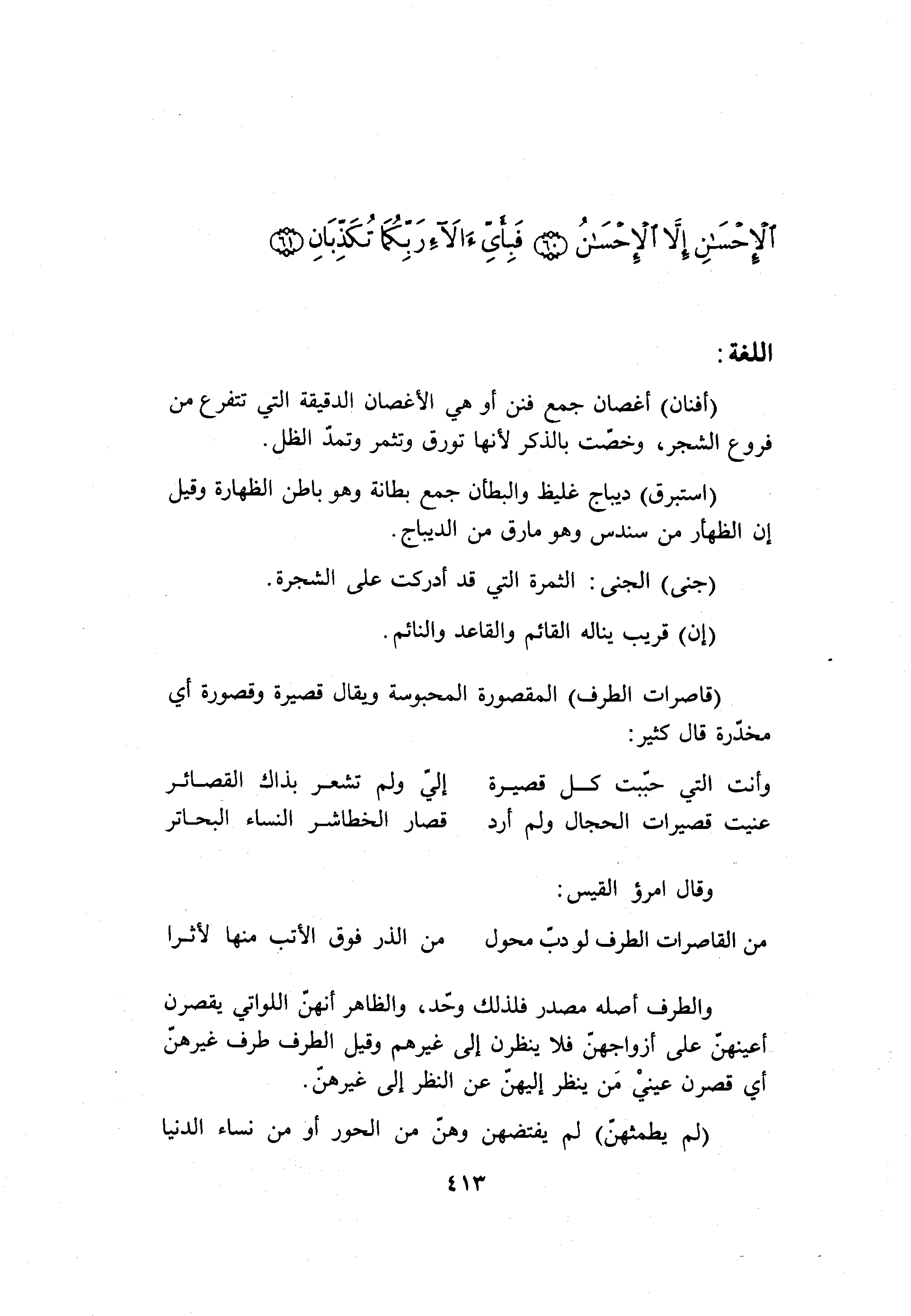 (قاصِراتُ الطَّرْفِ) المقصورة المحبوسة ويقال قصيرة وقصورة أي مخدّرة قال كثير: