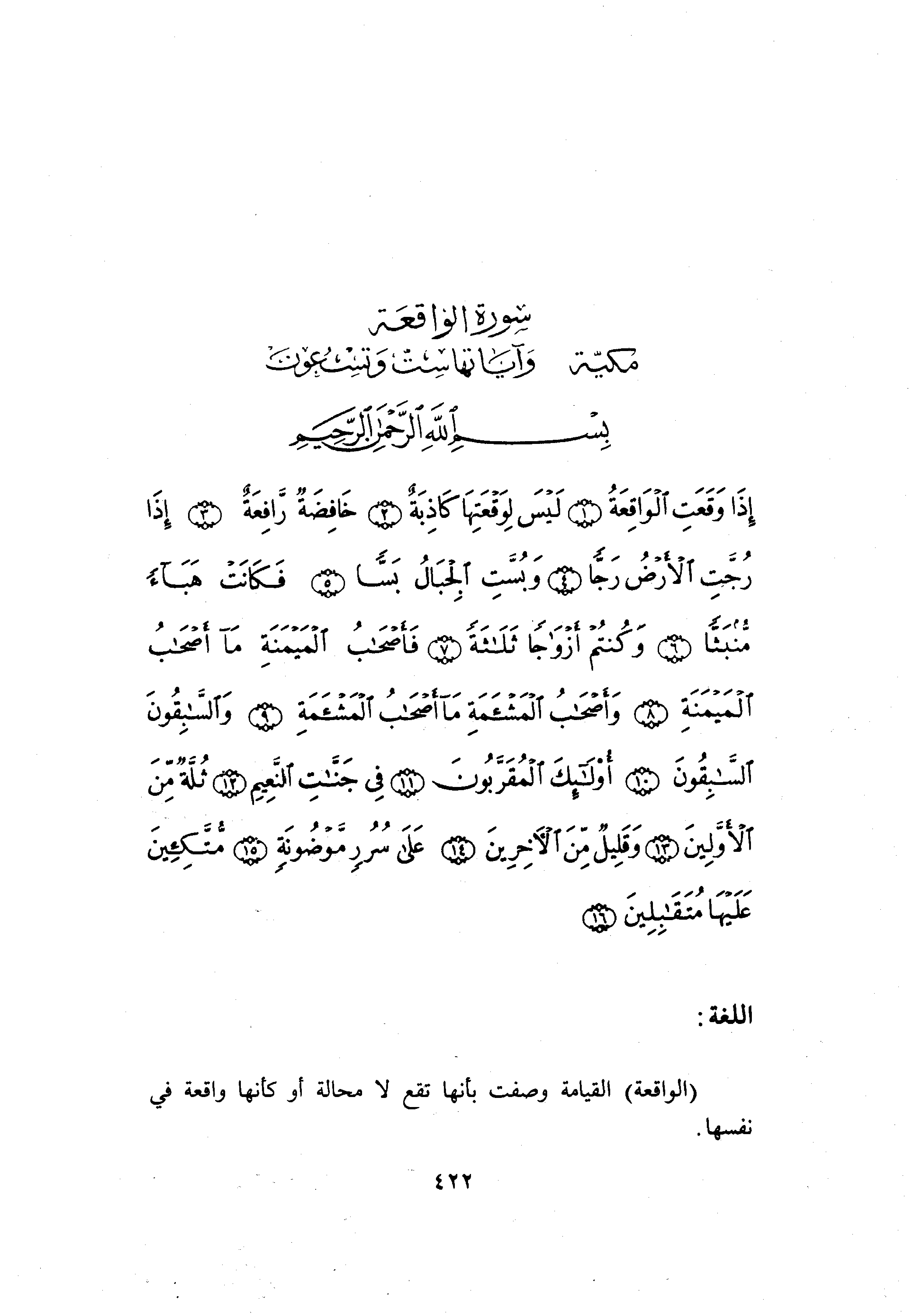 (56) سورة الواقعة مكيّة وآياتها ستّ وتسعون