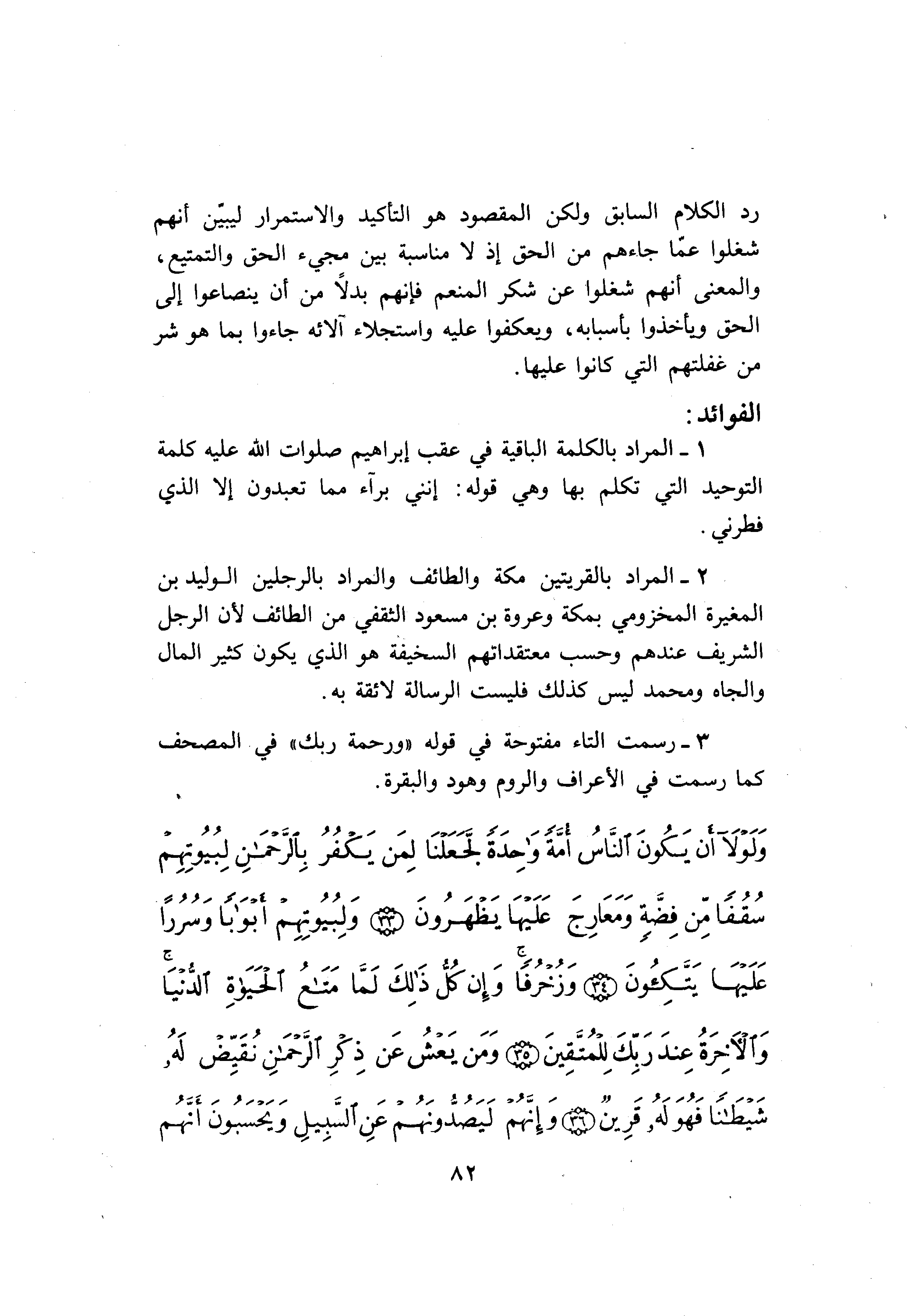 1- المراد بالكلمة الباقية في عقب إبراهيم صلوات الله عليه كلمة التوحيد التي تكلم بها وهي قوله: إنني برآء مما تعبدون إلا الذي فطرني.
