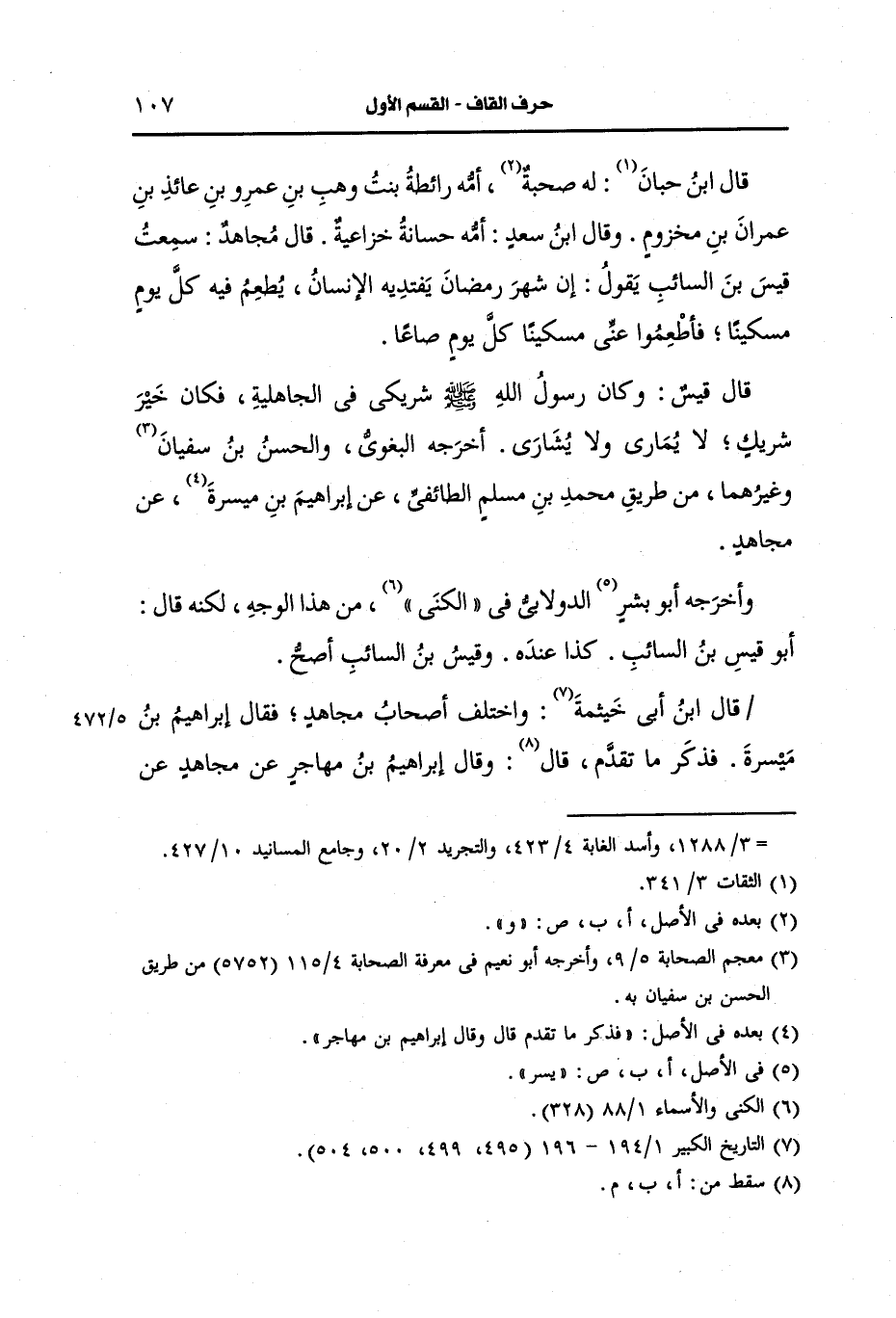 وأَخرجه أَبو بشر الدولابي في الكنى من هذا الوجه لكنه قال أَبو قيس بن بن السائب كذا عنده وقيس بن السائب أصح.