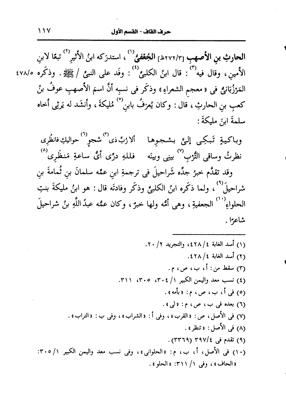 وذكره المرزباني في معجم الشعراء وذكر في نسبه ان اسم الاصهب عوف بن كعب بن الحارث قال، وكان يعرف بأمه مليكة وأنشد له يرثى اخاه سلمة بن مليكة: