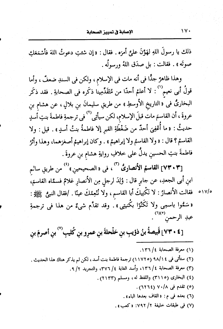 7304- قبيصه بن دؤيب بن حلحلة بن عَمرو بن كليب بن أصرم بن عَبد الله بن قمير بن حبشية أَبو إسحاق الخُزاعيّ، ويُقال: أَبو سعيد.