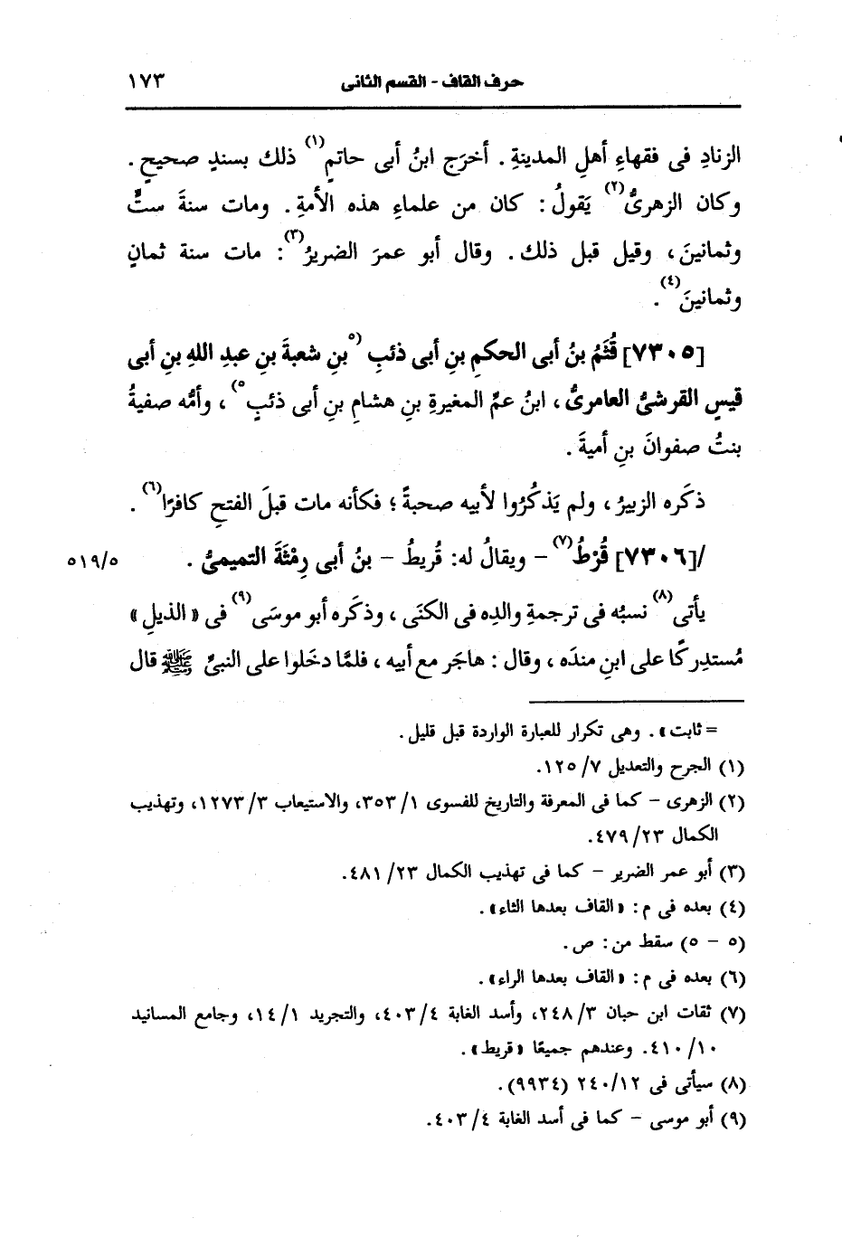 7305- (ز) قثم بن أبي الحكم بن أبي ذئب بن شعبة بن عَبد الله بن أبي قيس، القُرشِيّ العامري، ابن عم المغيرة بن هشام بن أبي ذئب وأمه صفية بنت صفوان بن أُمَيَّة.