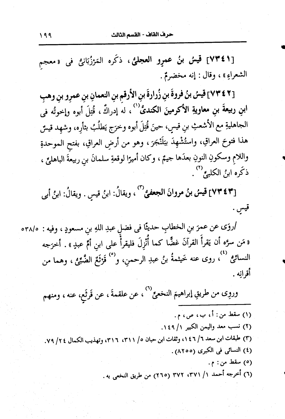 7342- (ز) قيس بن فروة بن زرارة بن الأرقم بن النعمان بن عَمرو بن وهب بن ربيعة بن معاوية الاكرمين.