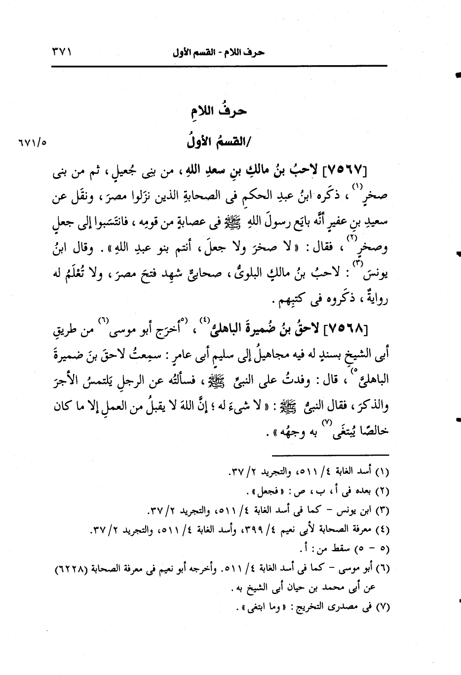 وقال ابن يُونُس: لاحب بن مالك البلوى صحابي شَهِدَ فَتْح مِصْرَ ولا تعلم له رواية ذكروه في كتبهم.