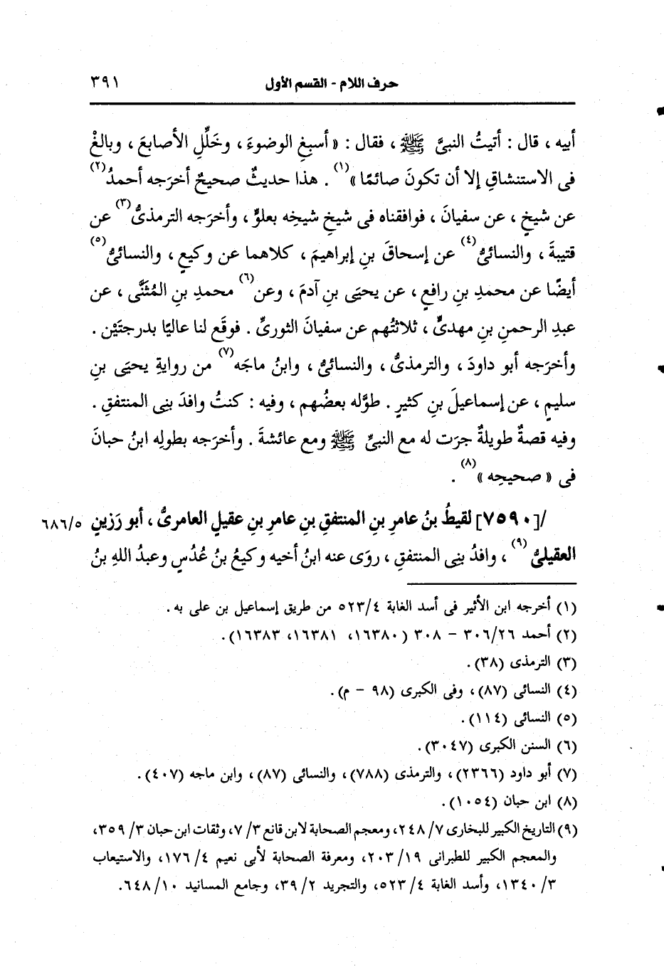 7590- لقيط بن عامر بن المنتفق بن عامر العامري أَبو رزين العقيلي وافد بني المنتفق.