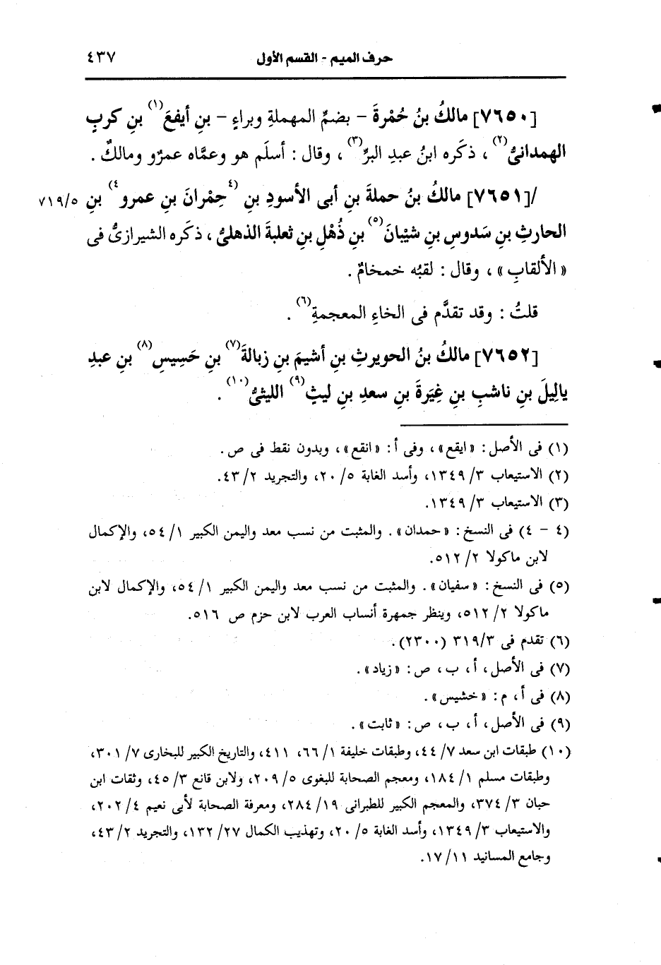 7652- مالك بن الحويرث بن أشيم بن زبالة بن خشيش بن عبد ياليل بن ناشب بن غيرة ابن سعد بن ليث الليثي.