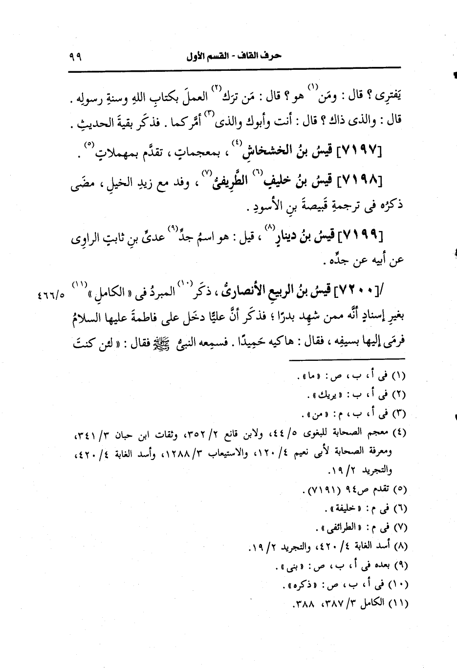 7200- (ز) قيس بن الربيع، الأَنصارِيّ.