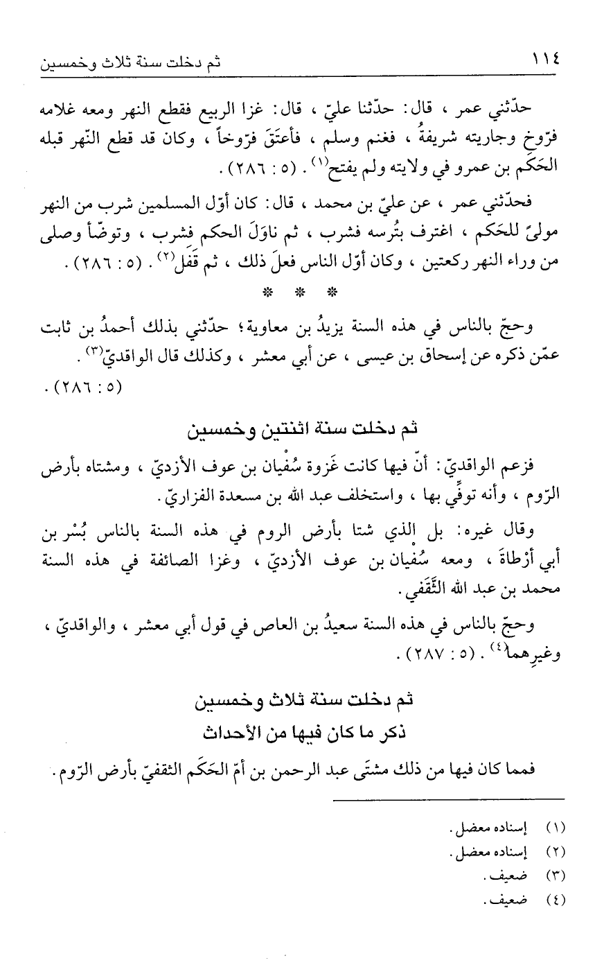 حدّثني عمر، قال: حدّثنا عليّ، قال: غزا الربيع فقطع النهر ومعه غلامه فرّوخ وجاريته شريفةُ، فغنم وسلم، فأعتَقَ فرّوخًا، وكان قد قطع النّهر قبله الحَكَم بن عمرو في ولايته ولم يفتح (١). (٥: ٢٨٦).