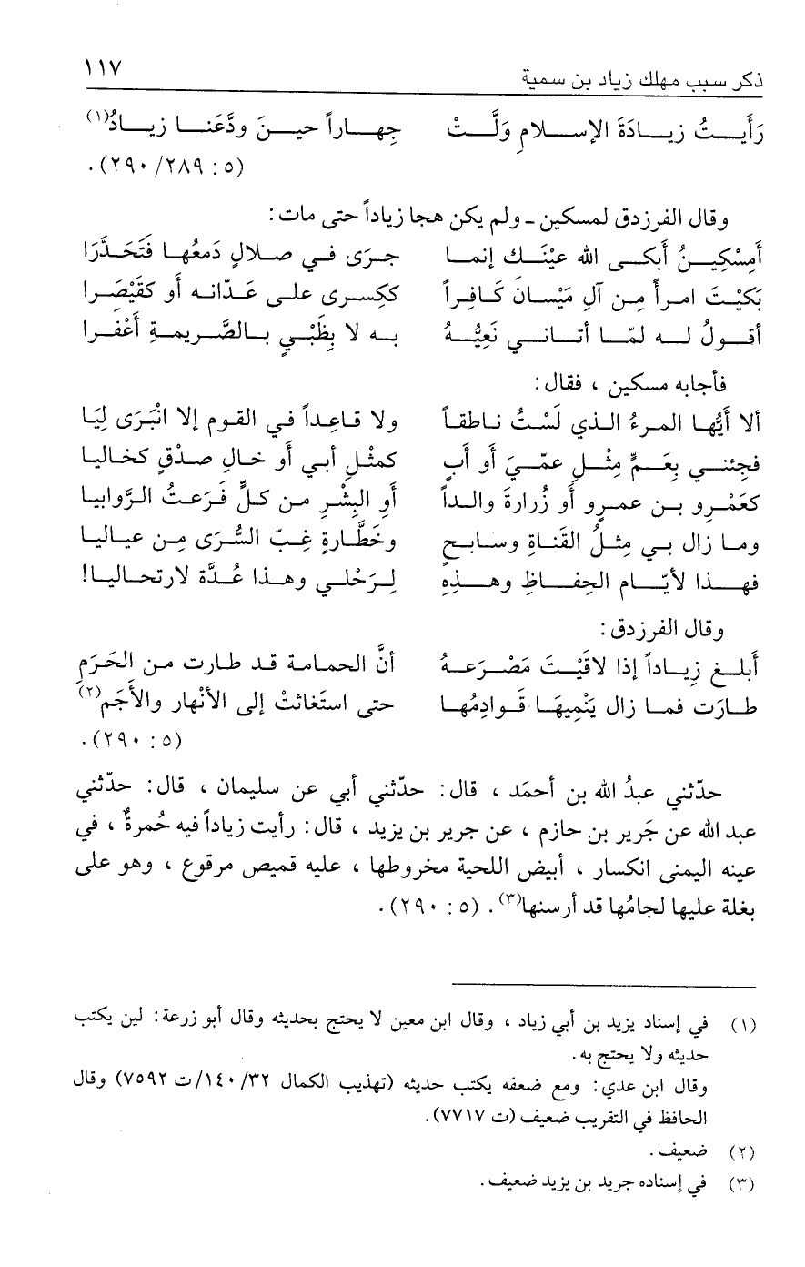 رَأَيتُ زيادَةَ الإسلامِ وَلَّت ... جِهارًا حينَ ودَّعَنا زيادُ (١)