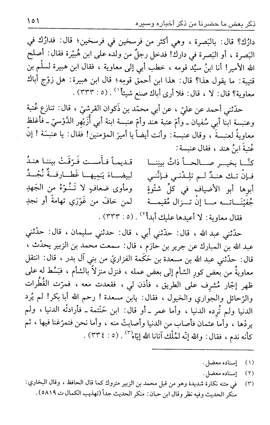 فقال معاوية: لا أعيدها عليك أبدًا (٢). (٥: ٣٣٣).