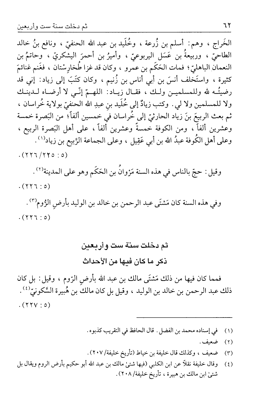 (٣) ضعيف، وكذلك قال خليفة بن خباط (تأريخ خليفة/٢٠٧).