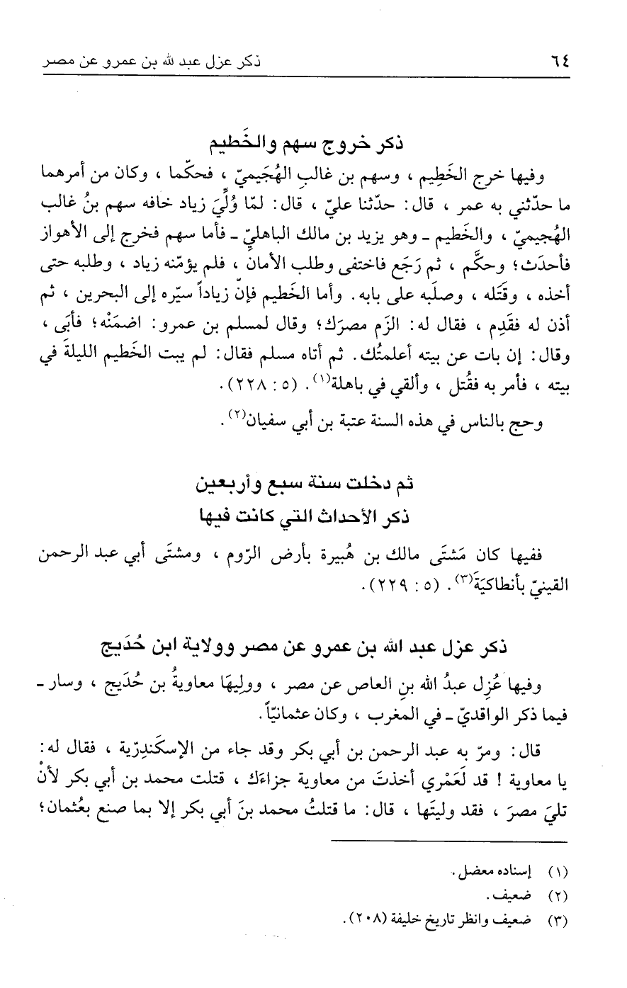 (٣) ضعيف وانظر تاريخ خليفة (٢٠٨).