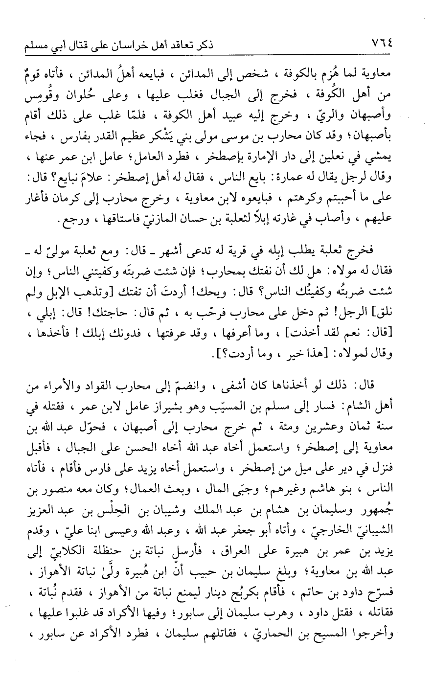قال: ذلك لو أخذناها كان أشفى، وانضمّ إلى محارب القواد والأمراء من أهل الشام: فسار إلى مسلم بن المسيّب وهو بشيراز عامل لابن عمر، فقتله في سنة ثمان وعشرين ومئة، ثم خرج محارب إلى أصبهان، فحوّل عبد الله بن معاوية إلى إصطخر؛ واستعمل أخاه عبد الله أخاه الحسن على الجبال، فأقبل فنزل في دير على ميل من إصطخر، واستعمل أخاه يزيد على فارس فأقام، فأتاه الناس، بنو هاشم وغيرهم؛ وجبَى المال، وبعث العمال؛ وكان معه منصور بن جُمهور وسليمان بن هشام بن عبد الملك وشيبان بن الحِلْس بن عبد العزيز الشيبانيّ الخارجيّ، وأتاه أبو جعفر عبد الله، وعبد الله وعيسى ابنا عليّ، وقدم يزيد بن عمر بن هبيرة على العراق، فأرسل نباتة بن حنظلة الكلابيّ إلى عبد الله بن معاوية؛ وبلغ سليمان بن حبيب أنّ ابن هُبيرة ولَّى نباتة الأهواز، فسرّح داود بن حاتم، فأقام بكربُج دينار ليمنع نباتة من الأهواز، فقدم نُباتة، فقاتله، فقتل داود، وهرب سليمان إلى سابور؛ وفيها الأكراد قد غلبوا عليها، وأخرجوا المسيح بن الحماريّ، فقاتلهم سليمان، فطرد الأكراد عن سابور،