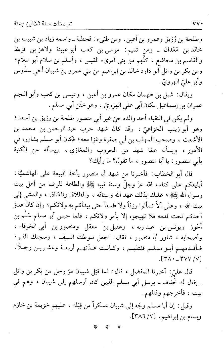 وقيل: إن أبا مسلم وجّه إلى شيبان عسكرًا من قِبَله، عليهم خزيمة بن خازم وبسام بن إبراهيم [٧/ ٣٨٦].