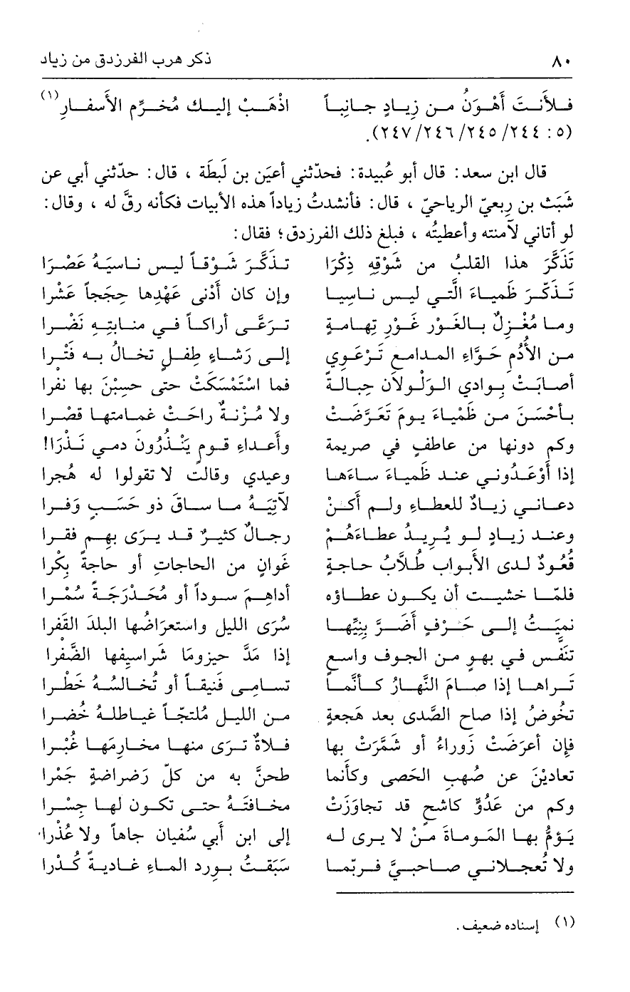 قال ابن سعد: قال أبو عُبيدة: فحدّثني أعيَن بن لَبطَة، قال: حدّثني أبي عن شَبَث بن رِبعيّ الرياحيّ، قال: فأنشدتُ زيادًا هذه الأبيات فكأنه رقَّ له، وقال: لو أتاني لآمنته وأعطيتُه، فبلغ ذلك الفرزدق؛ فقال: