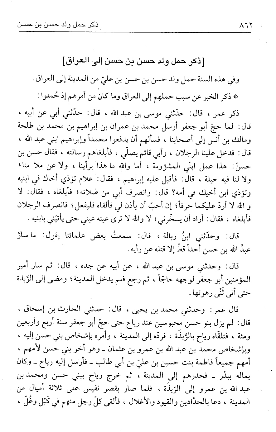 [ذكر حمل ولد حسن بن حسن إلى العراق]