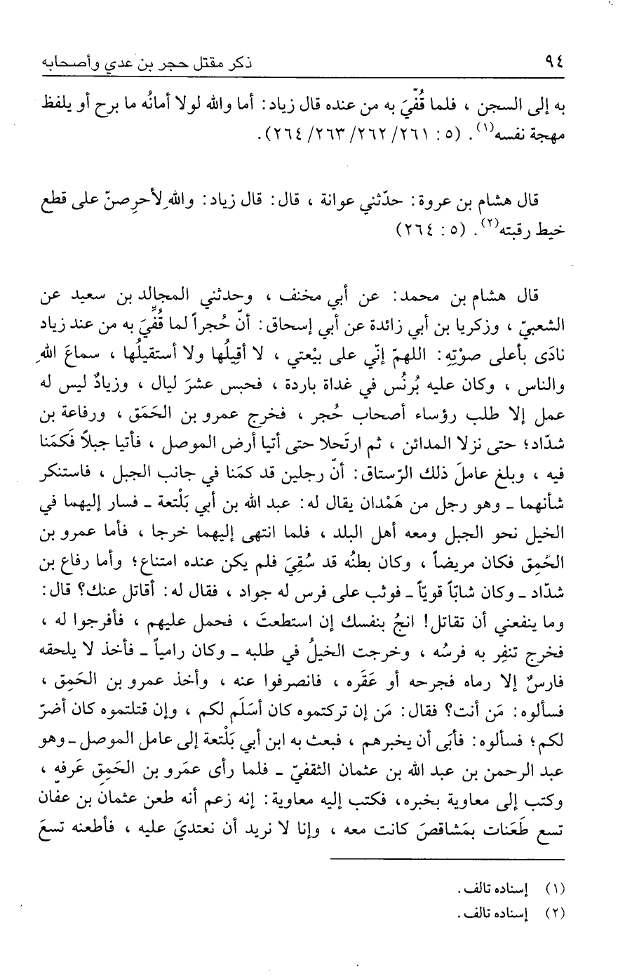 قال هشام بن عروة: حدّثني عوانة، قال: قال زياد: واللهِ لأحرِصنّ على قطع خيط رقبته (٢). (٥: ٢٦٤)