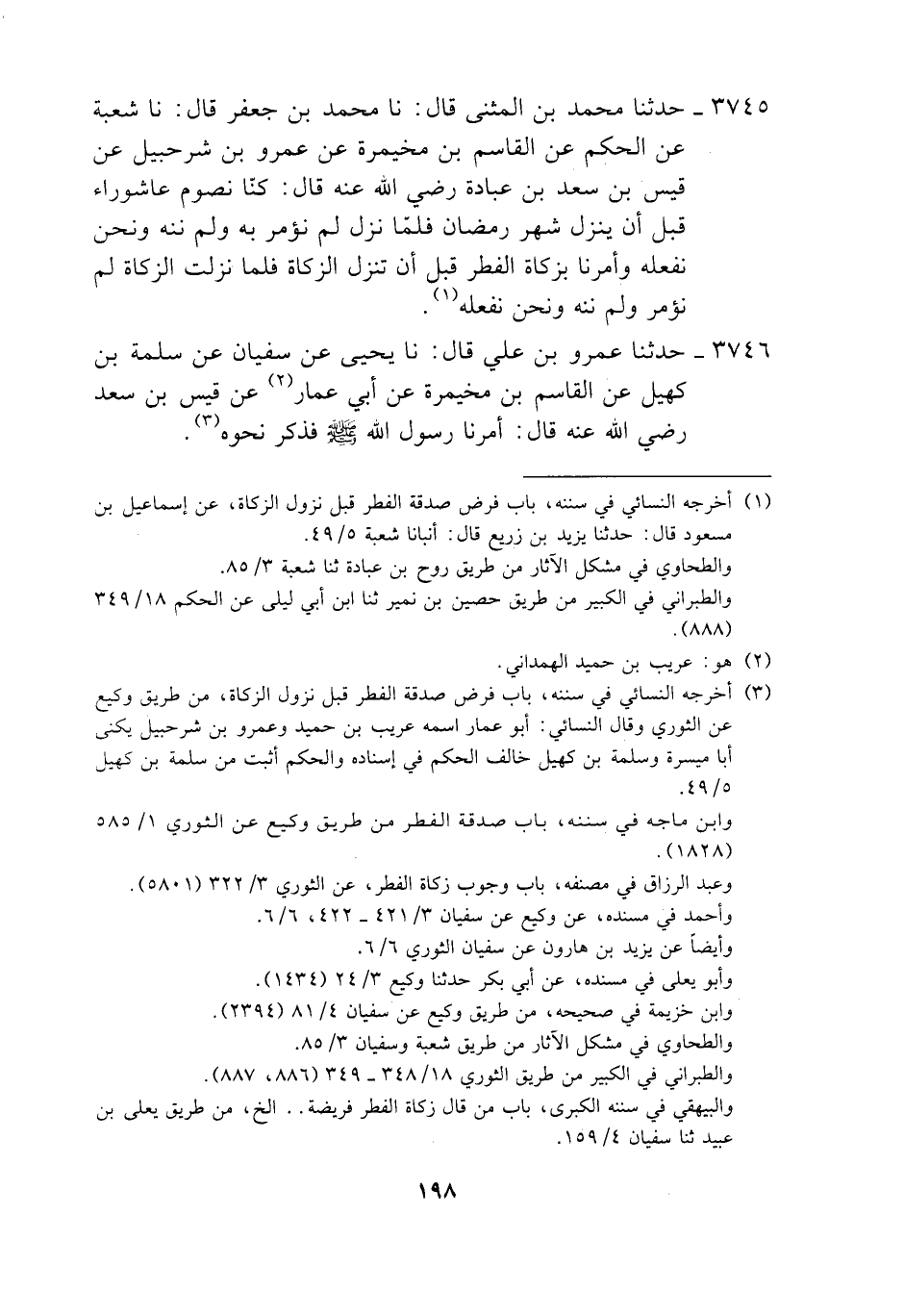 3745 - حَدَّثَنَا مُحَمَّدُ بْنُ الْمُثَنَّى، قَالَ: نَا مُحَمَّدُ بْنُ جَعْفَرٍ، قَالَ: نَا شُعْبَةُ، عَنِ الْحَكَمِ، عَنِ الْقَاسِمِ بْنِ مُخَيْمِرَةَ، عَنْ عَمْرِو بْنِ شُرَحْبِيلَ، عَنْ قَيْسِ بْنِ سَعْدِ بْنِ عُبَادَةَ، رَضِيَ اللَّهُ عَنْهُ، قَالَ: كُنَّا نَصُومُ عَاشُورَاءَ قَبْلَ أَنْ يَنْزِلَ شَهْرُ رَمَضَانَ، فَلَمَّا نَزَلَ لَمْ نُؤْمَرْ بِهِ وَلَمْ نُنْهَ، وَنَحْنُ نَفْعَلُهُ، §وَأَمَرَنَا بِزَكَاةِ الْفِطْرِ قَبْلَ أَنْ تَنْزِلَ الزَّكَاةُ، فَلَمَّا نَزَلَتِ الزَّكَاةُ لَمْ نُؤْمَرْ وَلَمْ نُنْهَ وَنَحْنُ نَفْعَلُهُ "