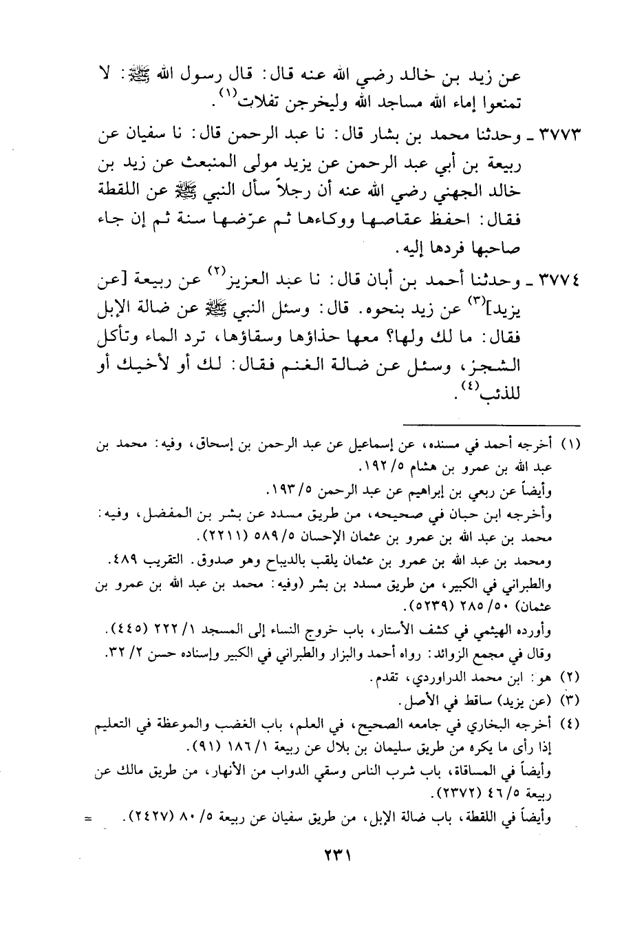 3773 - وَحَدَّثَنَا مُحَمَّدُ بْنُ بَشَّارٍ، قَالَ: نَا عَبْدُ الرَّحْمَنِ، قَالَ: نَا سُفْيَانُ، عَنْ رَبِيعَةَ بْنِ أَبِي عَبْدِ الرَّحْمَنِ، عَنْ يَزِيدَ، مَوْلَى الْمُنْبَعِثِ، عَنْ زَيْدِ بْنِ خَالِدٍ الْجُهَنِيِّ رَضِيَ اللَّهُ عَنْهُ أَنَّ رَجُلًا سَأَلَ النَّبِيَّ صَلَّى اللهُ عَلَيْهِ وَسَلَّمَ عَنِ اللُّقَطَةِ فَقَالَ: «§احْفَظْ عِفَاصَهَا وَوِكَاءَهَا ثُمَّ عَرِّضْهَا سَنَةً ثُمَّ إِنْ جَاءَ صَاحِبُهَا فَرُدَّهَا إِلَيْهِ»