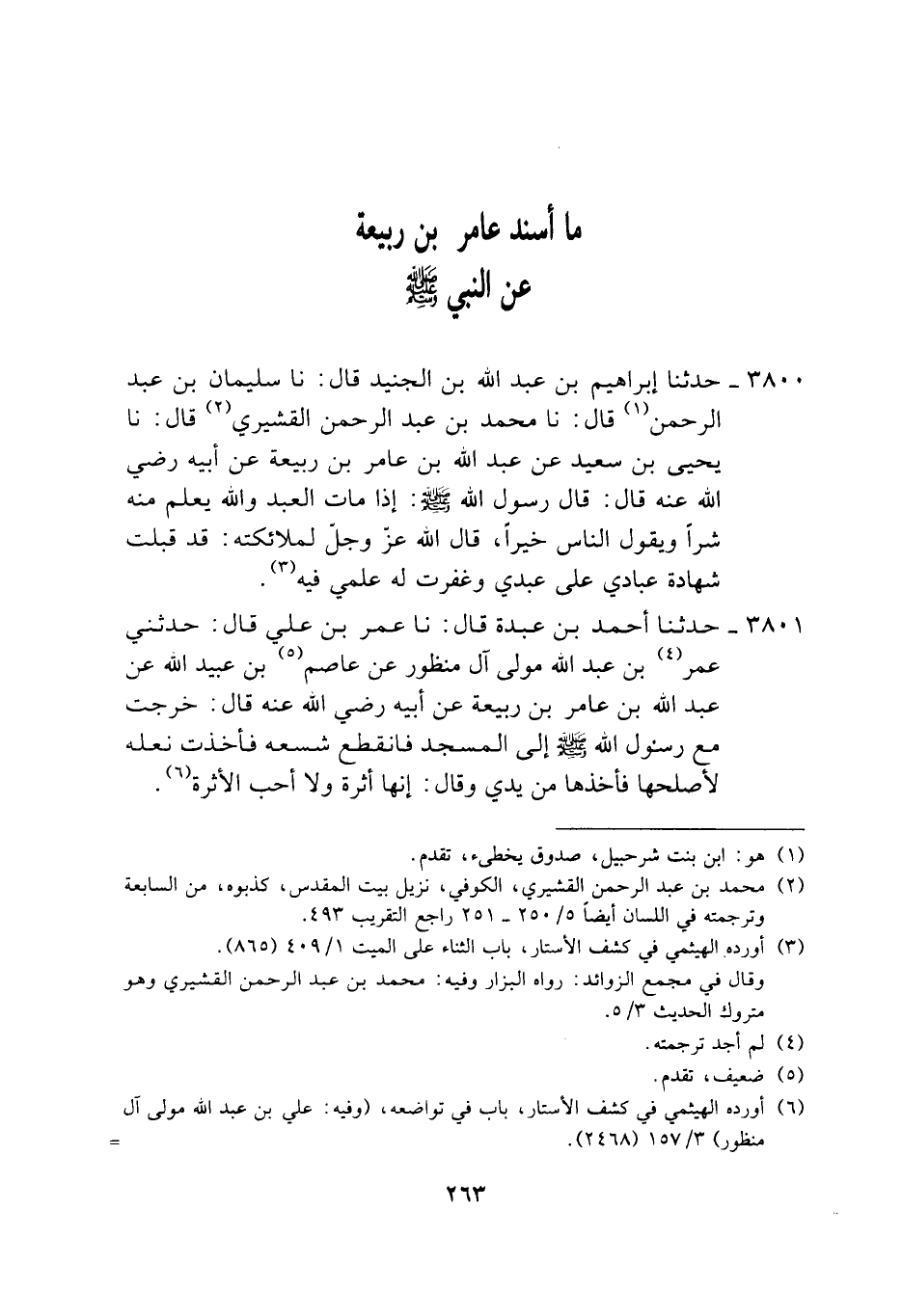 §مَا أَسْنَدَ عَامِرُ بْنُ رَبِيعَةَ عَنِ النَّبِيِّ