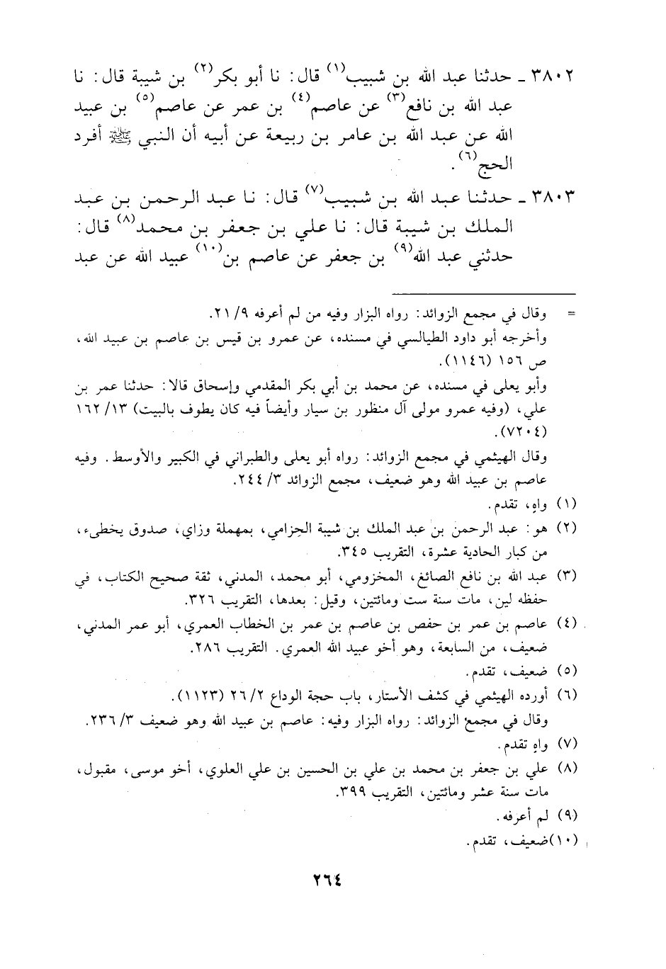 3802 - حَدَّثَنَا عَبْدُ اللَّهِ بْنُ شَبِيبٍ، قَالَ: نَا أَبُو بَكْرِ بْنُ شَيْبَةَ، قَالَ: نَا عَبْدُ اللَّهِ بْنُ نَافِعٍ، عَنْ عَاصِمِ بْنِ عُمَرَ، عَنْ عَاصِمِ بْنِ عُبَيْدِ اللَّهِ، عَنْ عَبْدِ اللَّهِ بْنِ عَامِرِ بْنِ رَبِيعَةَ، عَنْ أَبِيهِ، «§أَنَّ النَّبِيَّ صَلَّى اللهُ عَلَيْهِ وَسَلَّمَ أَفْرَدَ الْحَجَّ»