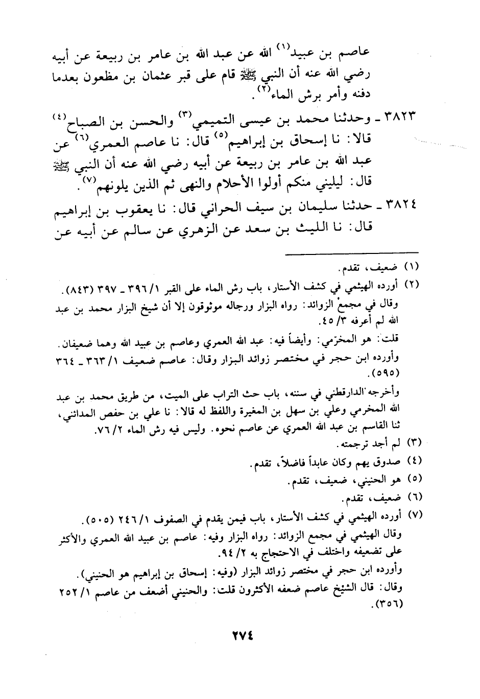3823 - وَحَدَّثَنَا مُحَمَّدُ بْنُ عِيسَى التَّمِيمِيُّ، وَالْحَسَنُ بْنُ الصَّبَّاحِ، قَالَا: نَا إِسْحَاقُ بْنُ إِبْرَاهِيمَ، قَالَ: نَا عَاصِمٌ الْعُمَرِيُّ، عَنْ عَبْدِ اللَّهِ بْنِ عَامِرِ بْنِ رَبِيعَةَ، عَنْ أَبِيهٍ رَضِيَ اللَّهُ عَنْهُ أَنَّ النَّبِيَّ صَلَّى اللهُ عَلَيْهِ وَسَلَّمَ، قَالَ: «§لِيَلِيَنِي مِنْكُمْ أُولُوا الْأَحْلَامِ وَالنُّهَى ثُمَّ الَّذِينَ يَلُونَهُمْ»