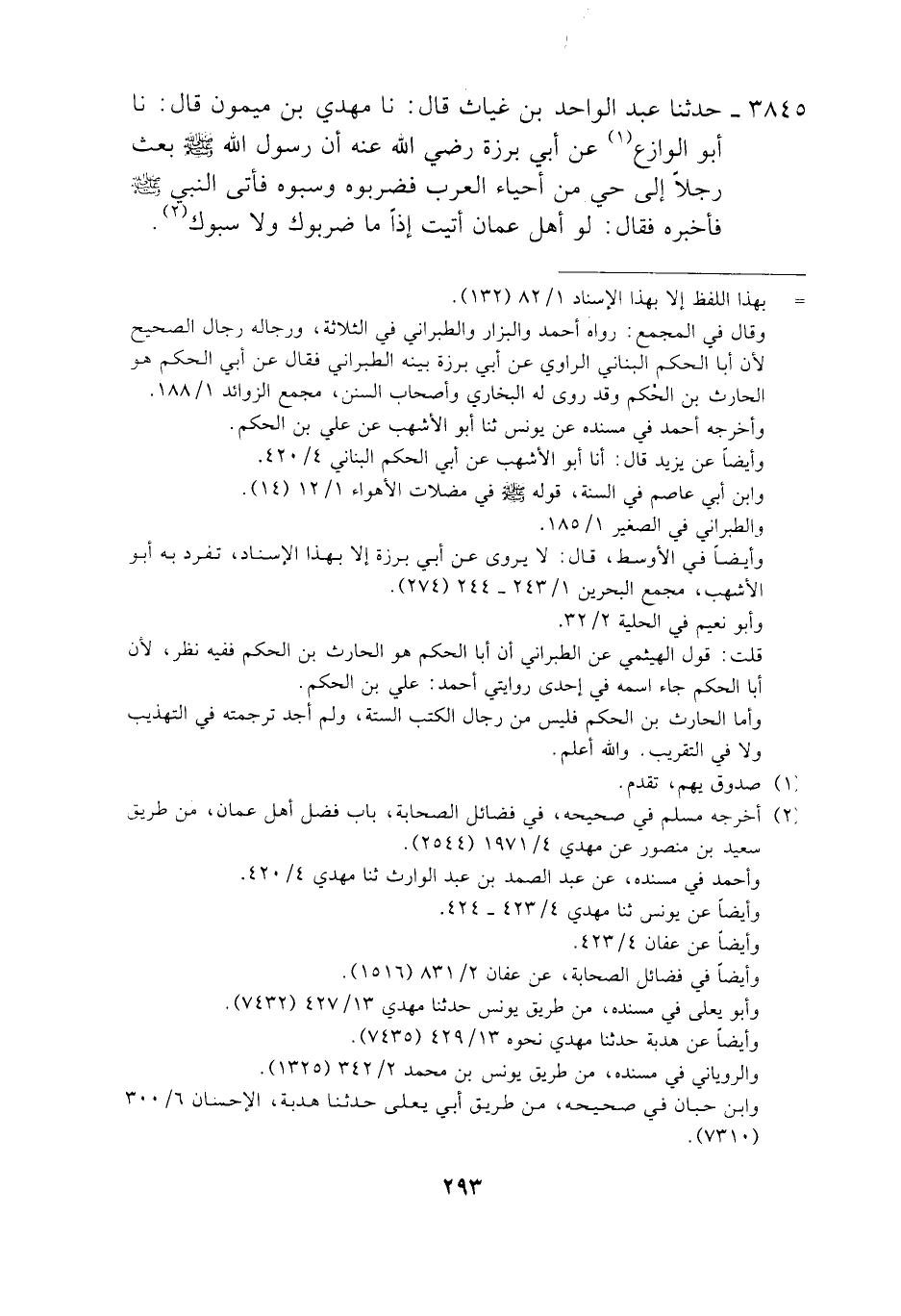 3845 - حَدَّثَنَا عَبْدُ الْوَاحِدِ بْنُ غِيَاثٍ، قَالَ: نَا مَهْدِيُّ بْنُ مَيْمُونٍ، قَالَ: نَا أَبُو الْوَازِعِ، عَنْ أَبِي بَرْزَةَ، رَضِيَ اللَّهُ عَنْهُ أَنَّ رَسُولَ اللَّهِ صَلَّى اللهُ عَلَيْهِ وَسَلَّمَ بَعَثَ رَجُلًا إِلَى حَيٍّ مِنْ أَحْيَاءِ الْعَرَبِ فَضَرَبُوهُ وَسَبُّوهُ فَأَتَى النَّبِيَّ صَلَّى اللهُ عَلَيْهِ وَسَلَّمَ فَأَخْبَرَهُ فَقَالَ: «§لَوْ أَهْلَ عُمَانَ أَتَيْتَ إِذًا مَا ضَرَبُوكَ وَلَا سَبُّوكَ»