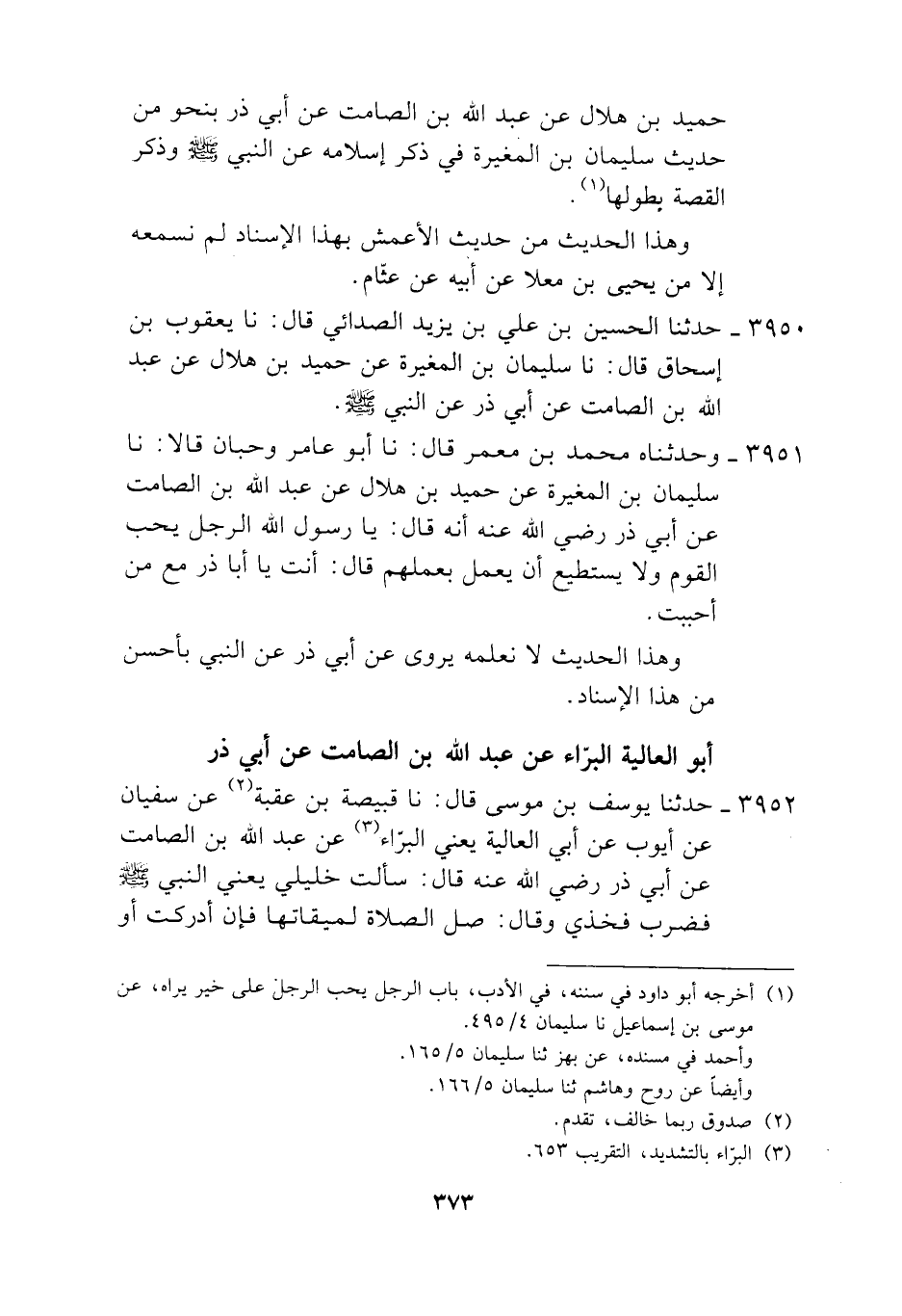 3950 - حَدَّثَنَا الْحُسَيْنُ بْنُ عَلِيِّ بْنِ يَزِيدَ الصُّدَائِيُّ، قَالَ: نَا يَعْقُوبُ بْنُ إِسْحَاقَ، قَالَ: نَا سُلَيْمَانُ بْنُ الْمُغِيرَةِ، عَنْ حُمَيْدِ بْنِ هِلَالٍ، عَنْ عَبْدِ اللَّهِ بْنِ الصَّامِتِ، عَنْ أَبِي ذَرٍّ، عَنِ النَّبِيِّ صَلَّى اللهُ عَلَيْهِ وَسَلَّمَ.