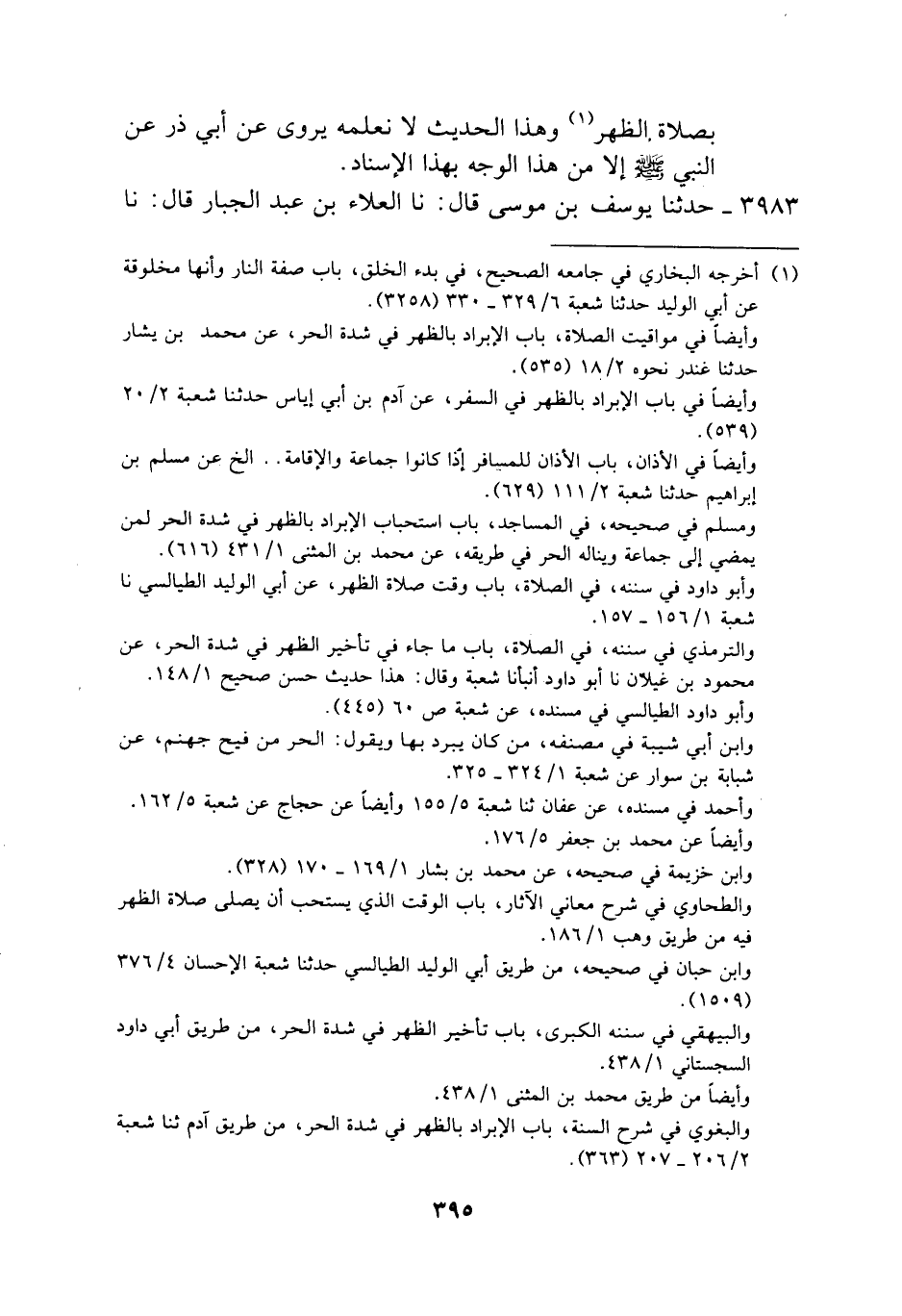3983 - حَدَّثَنَا يُوسُفُ بْنُ مُوسَى، قَالَ: نَا الْعَلَاءُ بْنُ عَبْدِ الْجَبَّارِ، قَالَ: نَا -[396]- عَبْدُ الْوَاحِدِ بْنُ زِيَادٍ، عَنِ الْحَارِثِ بْنِ حَصِيرَةَ، عَنْ زَيْدِ بْنِ وَهْبٍ، قَالَ: قَالَ: أَبُو ذَرٍّ لِأَنْ أَحْلِفَ مِرَارًا أَنَّ ابْنَ صَائِدٍ، هُوَ الدَّجَّالُ أَحَبُّ إِلَيَّ مِنْ أَنْ أَحْلِفَ مَرَّةً وَاحِدَةً أَنَّهُ لَيْسَ بِهِ، وُلِدَ مَوْلُودٌ فِي الْيَهُودِ فَبَعَثَ النَّبِيُّ صَلَّى اللهُ عَلَيْهِ وَسَلَّمَ إِلَى أُمِّهِ يَسْأَلُهَا كَمْ حَمَلْتِ بِهِ فَسَأَلْتُهَا، فَقَالَتِ: اثْنَيْ عَشَرَ شَهْرًا، فَأَتَيْتُهُ فَأَخْبَرْتُهُ فَقَالَ: " سَلْهَا مِنْ صَيْحَتِهِ حَيْثُ وَقَعَ إِلَى الْأَرْضِ فَقَالَتْ: كَلِمَةً ذَهَبَتْ عَنِّي فَقَالَ لَهُ النَّبِيُّ صَلَّى اللهُ عَلَيْهِ وَسَلَّمَ " إِنِّي قَدْ خَبَّأْتُ لَكَ خَبِيًّا فَمَا هُوَ؟ قَالَ: «عَظُمَ شَأْنُ عَفْرَاءَ وَالدُّخَانُ» فَكَانَ إِذَا أَرَادَ أَنْ يَقُولَ: الدُّخَانُ لَمْ يَسْتَطِعْ، فَقَالَ: الدُّخُّ، فَقَالَ النَّبِيُّ صَلَّى اللهُ عَلَيْهِ وَسَلَّمَ: «§اخْسَأْ فَلَنْ تَسْبِقَ الْقَدَرَ» وَهَذَا الْحَدِيثُ لَا نَعْلَمُهُ يُرْوَى عَنْ أَبِي ذَرٍّ إِلَّا بِهَذَا الْإِسْنَادِ