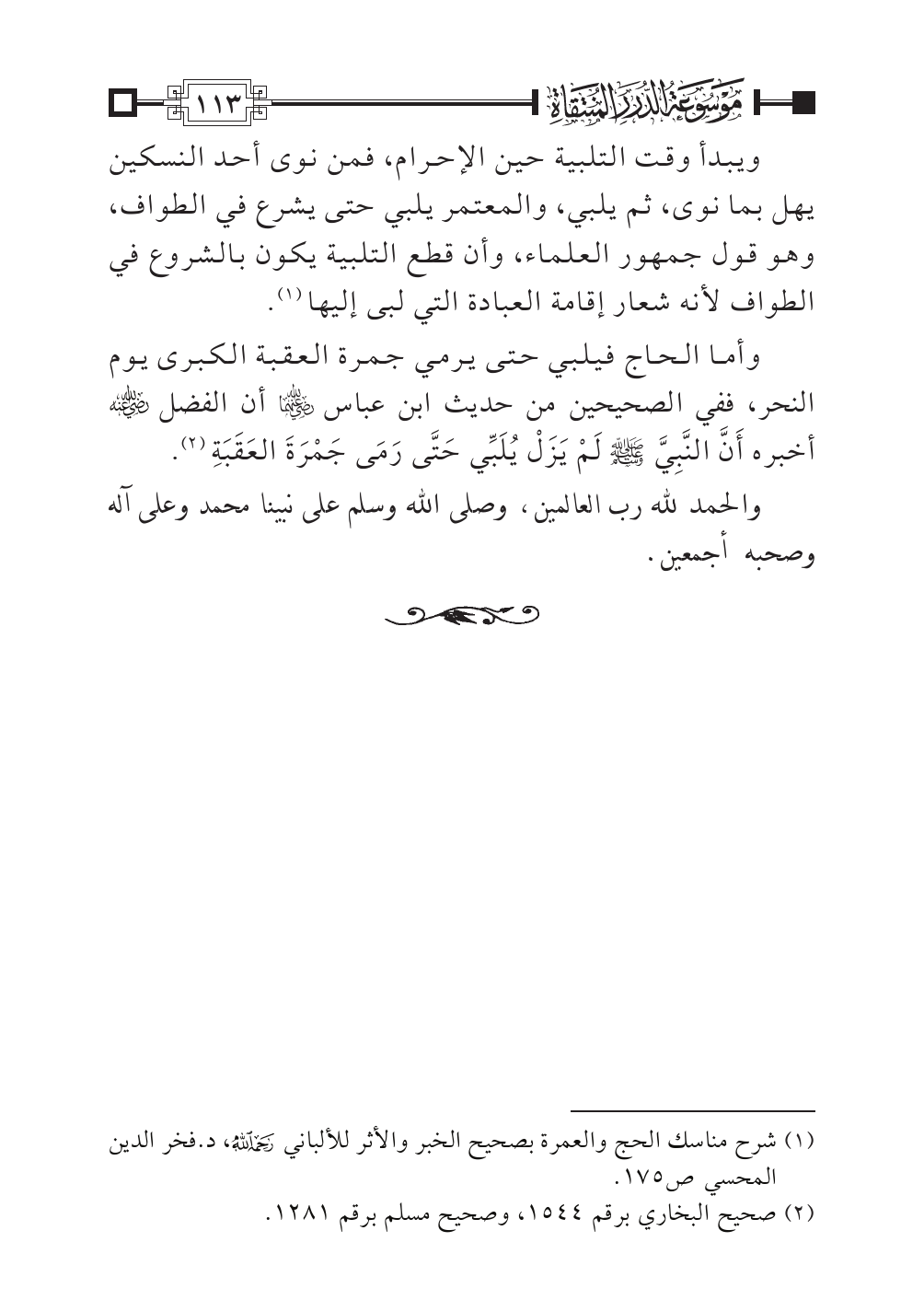 (¬١). شرح مناسك الحج والعمرة بصحيح الخبر والأثر للألباني -رحمه الله-، د. فخر الدين المحسي ص ١٧٥.