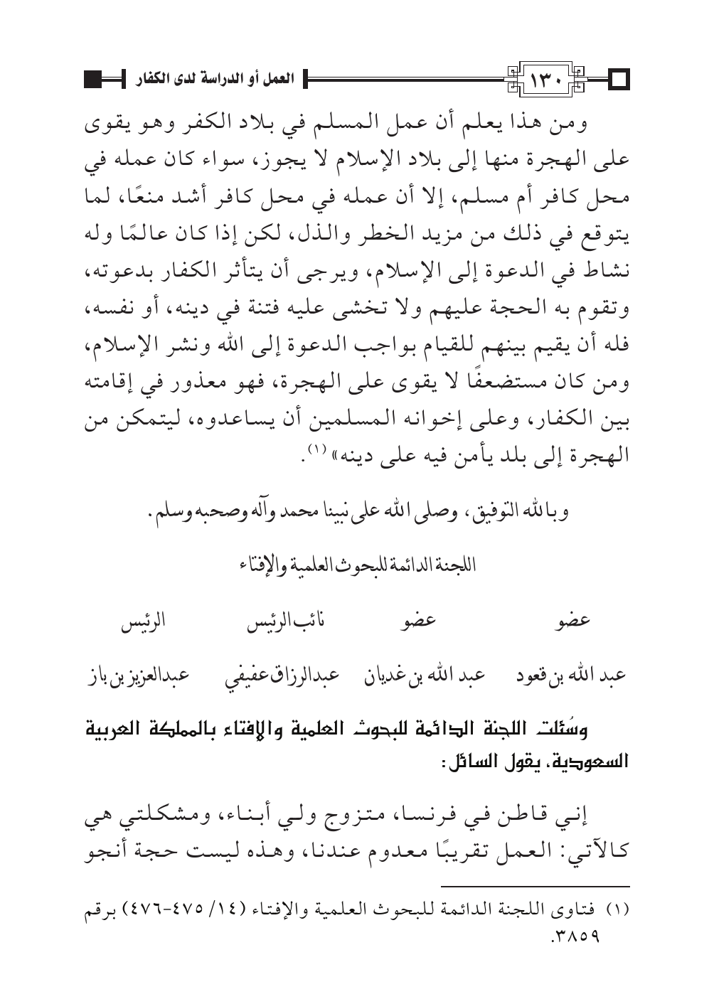 (¬١). فتاوى اللجنة الدائمة للبحوث العلمية والإفتاء (١٤/ ٤٧٥ - ٤٧٦) برقم ٣٨٥٩.