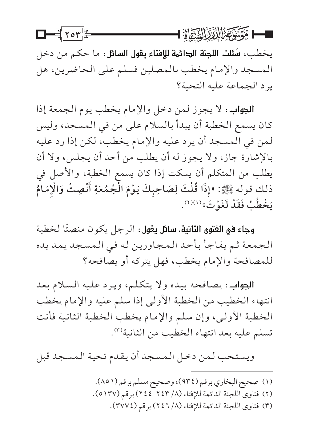 (¬٣). فتاوى اللجنة الدائمة للإفتاء (٨/ ٢٤٦) برقم (٣٧٧٤).