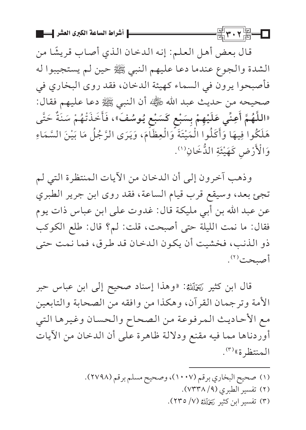 قال ابن كثير -رحمه الله-: «وهذا إسناد صحيح إلى ابن عباس حبر الأمة وترجمان القرآن، وهكذا من وافقه من الصحابة والتابعين مع الأحاديث المرفوعة من الصحاح والحسان وغيرها التي أوردناها مما فيه مقنع ودلالة ظاهرة على أن الدخان من الآيات المنتظرة» (¬٣).