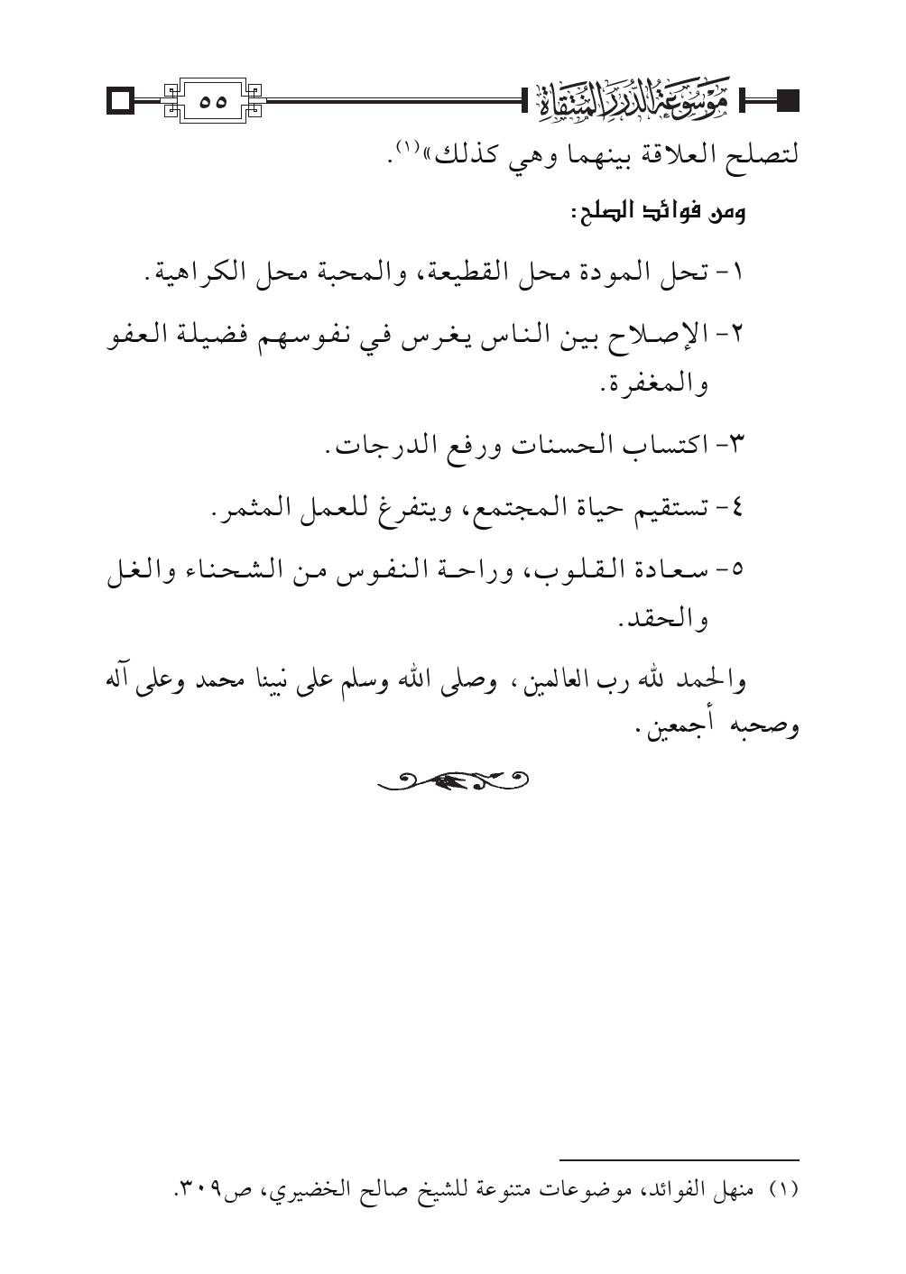 (¬١). منهل الفوائد، موضوعات متنوعة للشيخ صالح الخضيري، ص ٣٠٩.