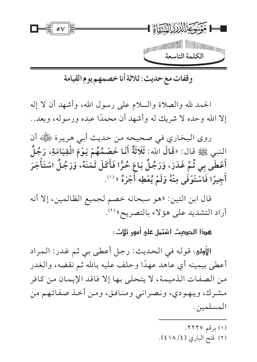 وقفات مع حديث: ثلاثة أنا خصمهم يوم القيامة