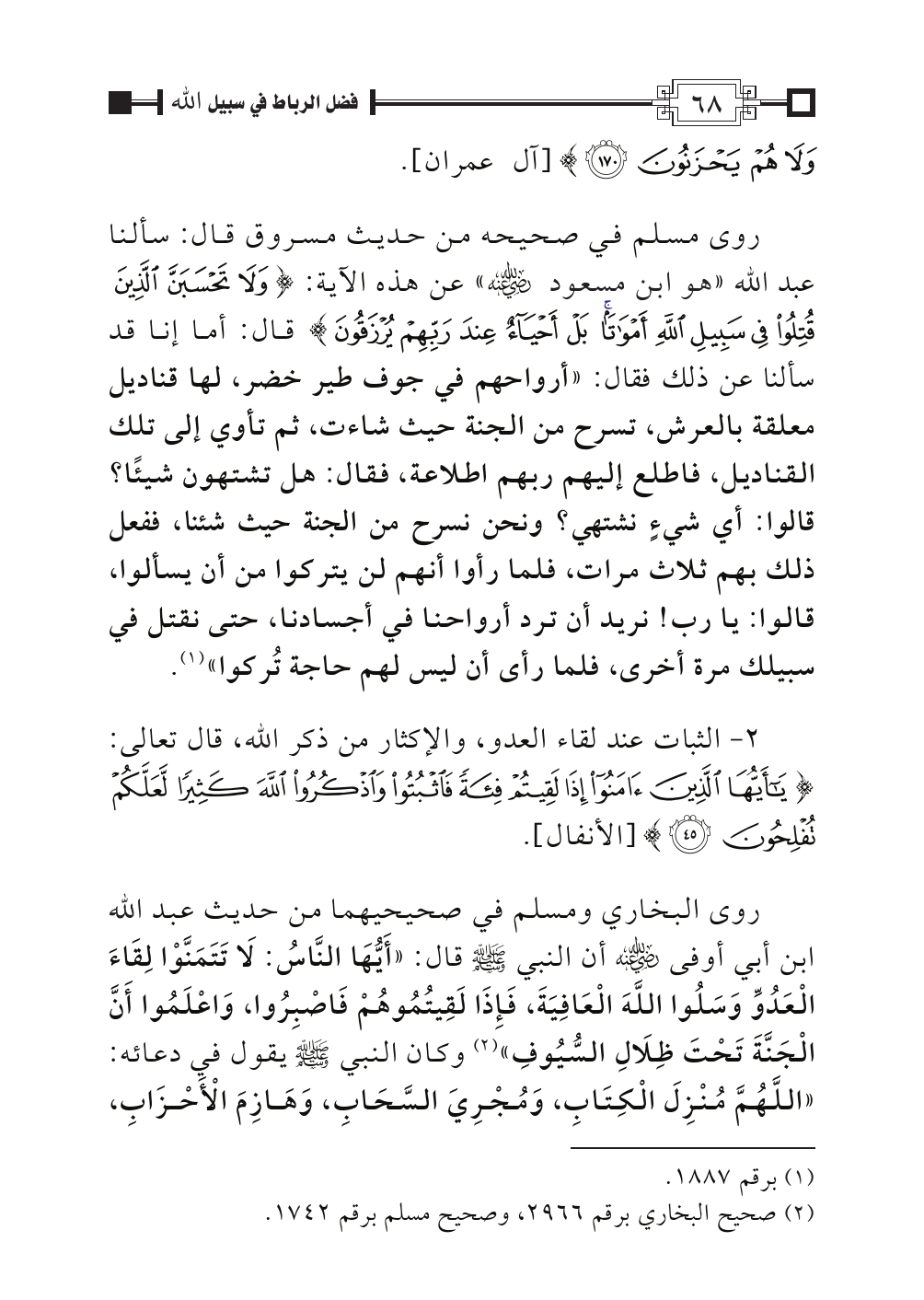 (¬٢). صحيح البخاري برقم ٢٩٦٦، وصحيح مسلم برقم ١٧٤٢.