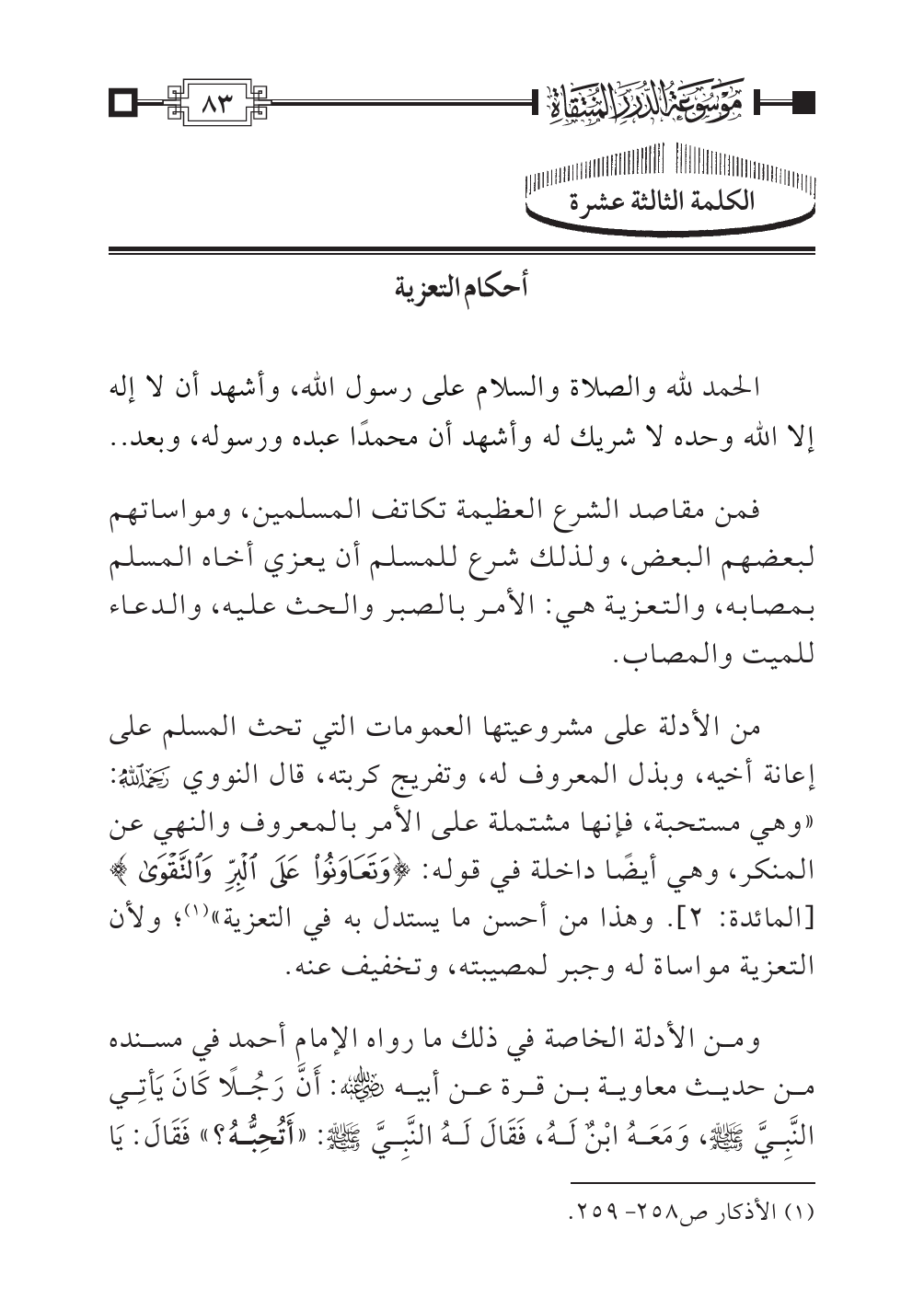 (¬١). الأذكار ص ٢٥٨ - ٢٥٩.