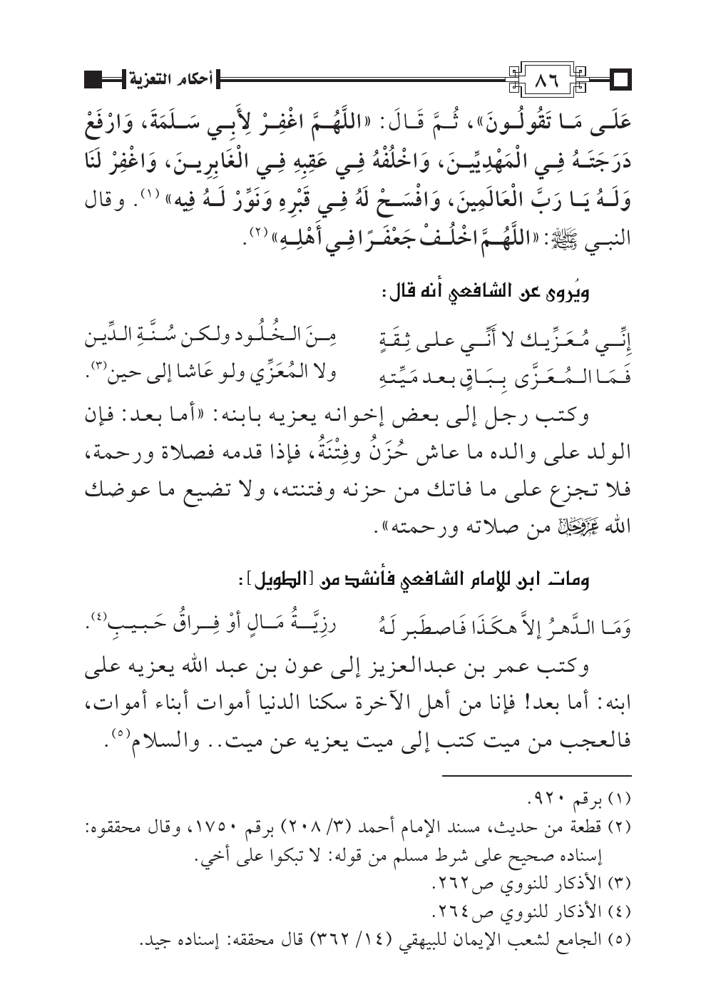 ومات ابن للإمام الشافعي فأنشد من [الطويل]:
