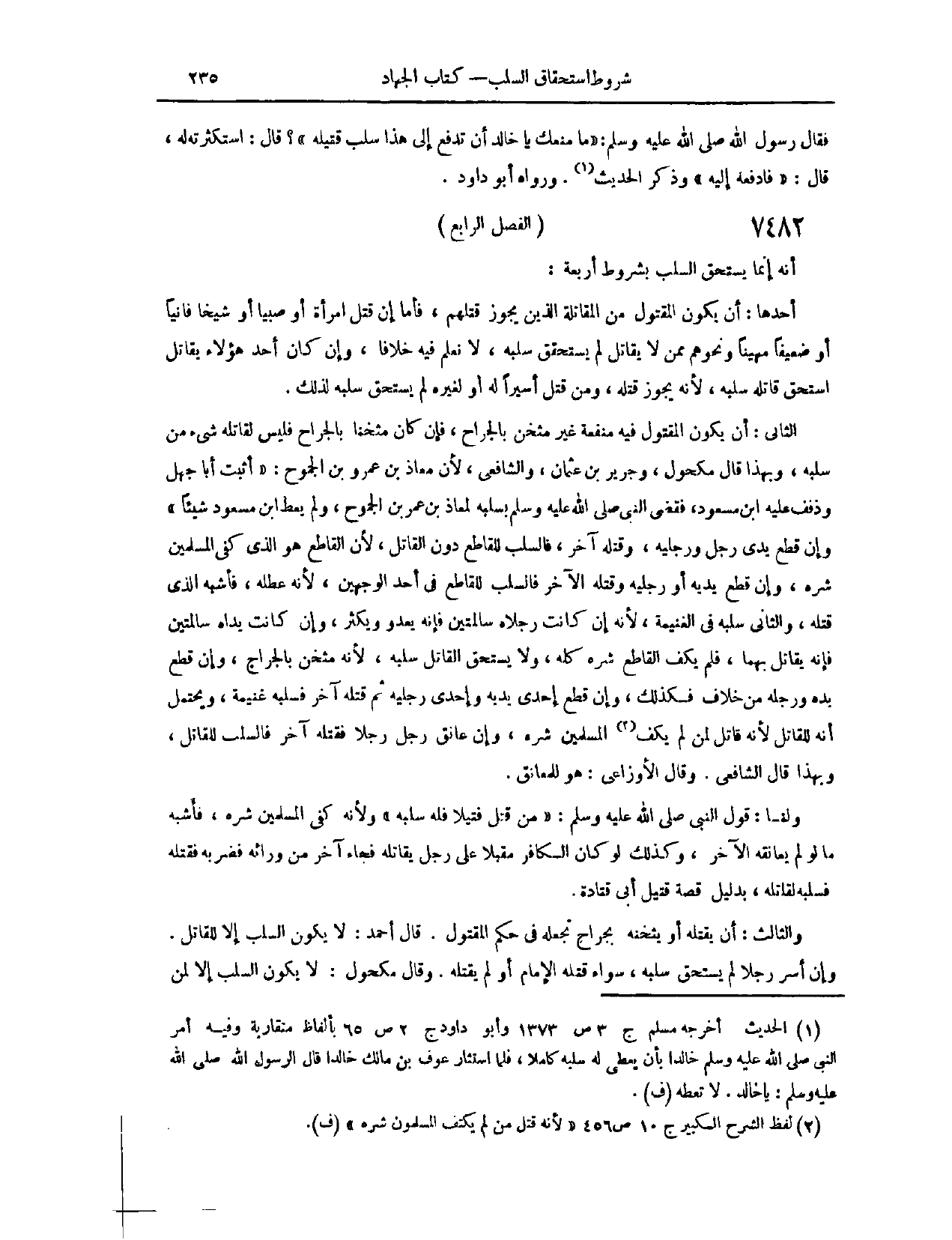 [الْفَصْلُ الرَّابِعُ يَسْتَحِقُّ السَّلَبَ بِشُرُوطٍ أَرْبَعَةٍ]