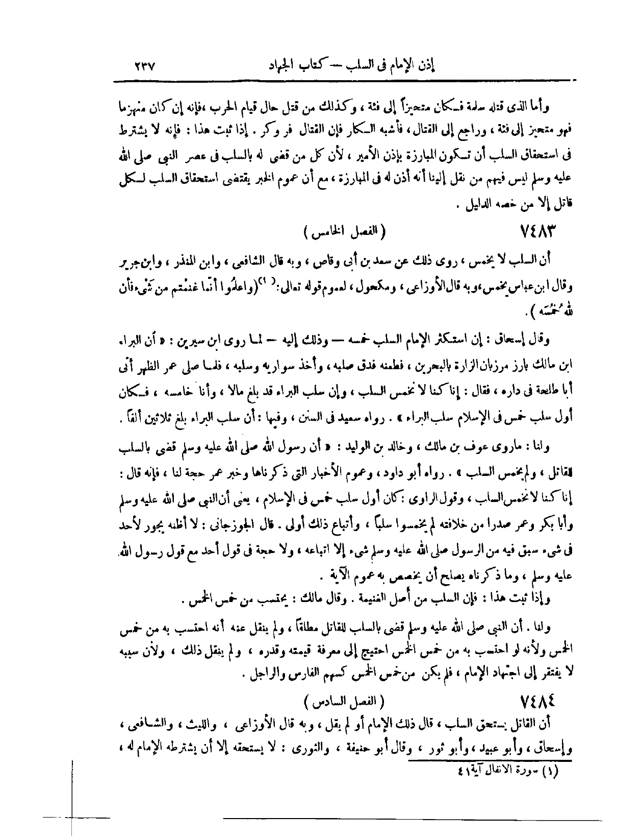 [الْفَصْل الْخَامِس السَّلَب لَا يُخْمَسُ]