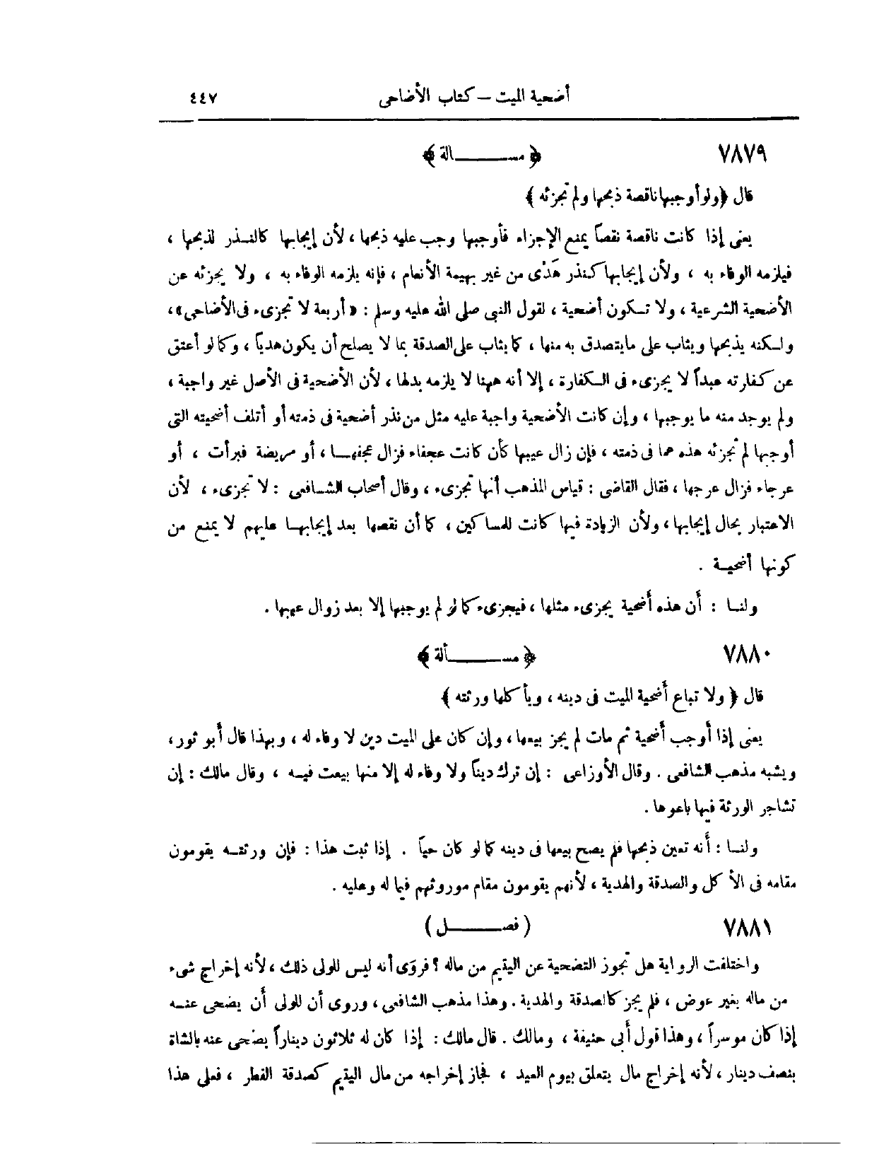 [مَسْأَلَة أَوْجَبَ الْأُضْحِيَّة فَكَانَتْ نَاقِصَة]