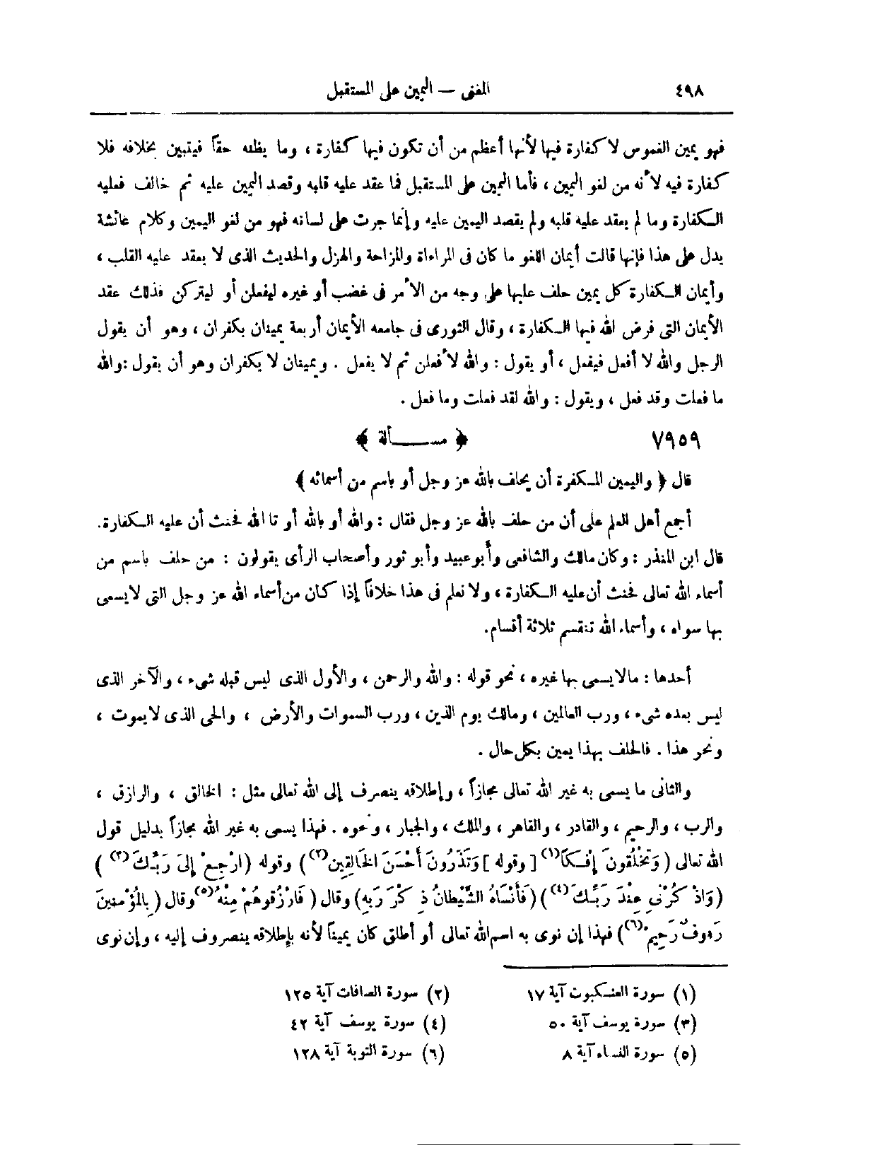 [مَسْأَلَة الْيَمِينُ الْمُكَفِّرَة]