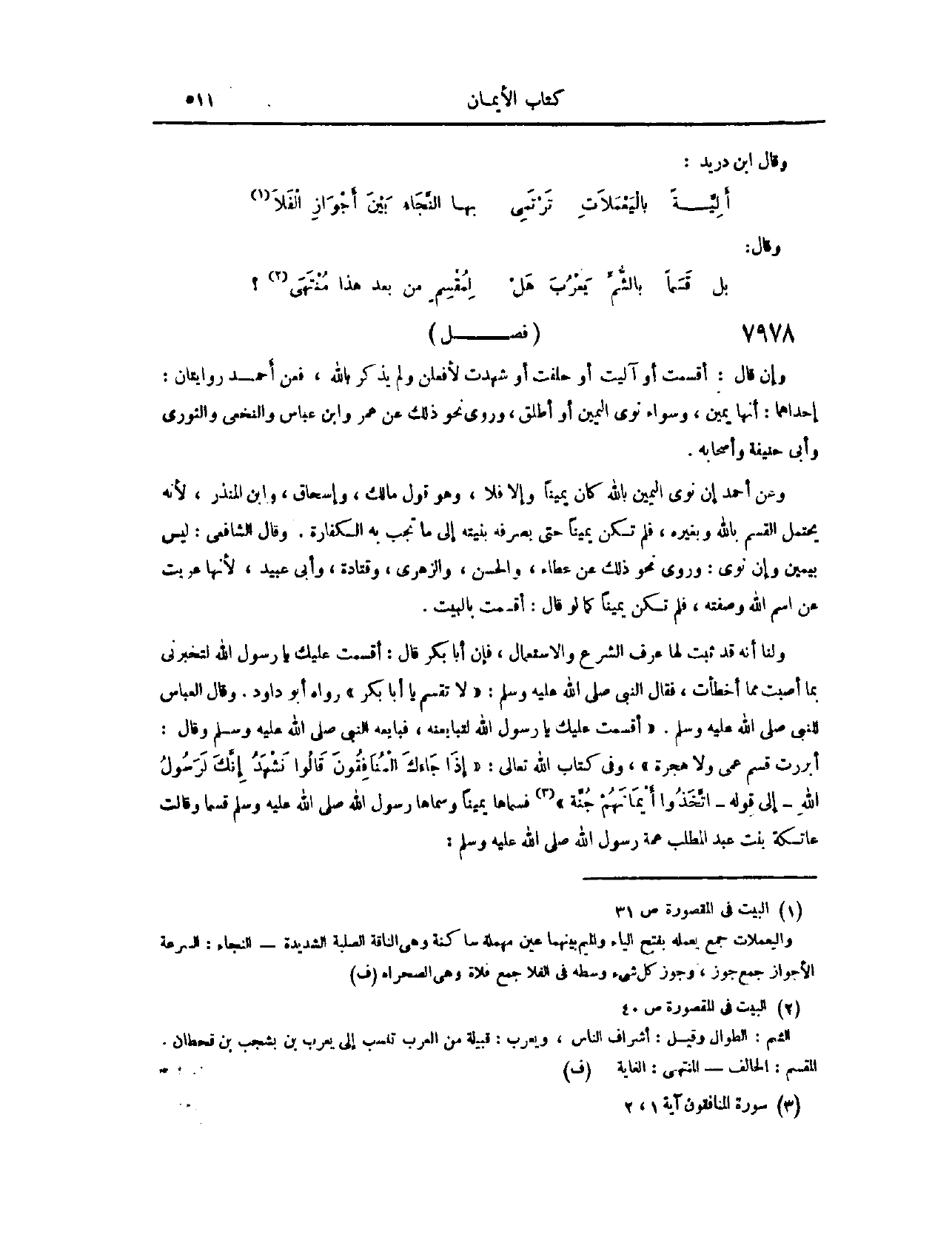 (٧٩٧٢) فَصْلٌ: فَإِنْ قَالَ: أَقْسَمْت، أَوْ آلَيْت، أَوْ حَلَفْت، أَوْ شَهِدْت لَأَفْعَلَنَّ. وَلَمْ يَذْكُرْ بِاَللَّهِ، فَعَنْ أَحْمَدَ رِوَايَتَانِ؛ إحْدَاهُمَا، أَنَّهَا يَمِينٌ، سَوَاءٌ نَوَى الْيَمِينَ أَوْ أَطْلَقَ. وَرُوِيَ نَحْوُ ذَلِكَ عَنْ عُمَرَ، وَابْنِ عَبَّاسٍ، وَالنَّخَعِيِّ، وَالثَّوْرِيِّ، وَأَبِي حَنِيفَةَ، وَأَصْحَابِهِ. وَعَنْ أَحْمَدَ، إنْ نَوَى الْيَمِينَ بِاَللَّهِ كَانَ يَمِينًا، وَإِلَّا فَلَا.