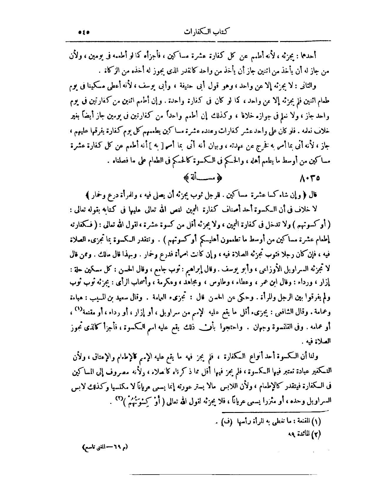 [مَسْأَلَة الْكِسْوَةَ أَحَدُ أَصْنَافِ كَفَّارَةِ الْيَمِينِ]