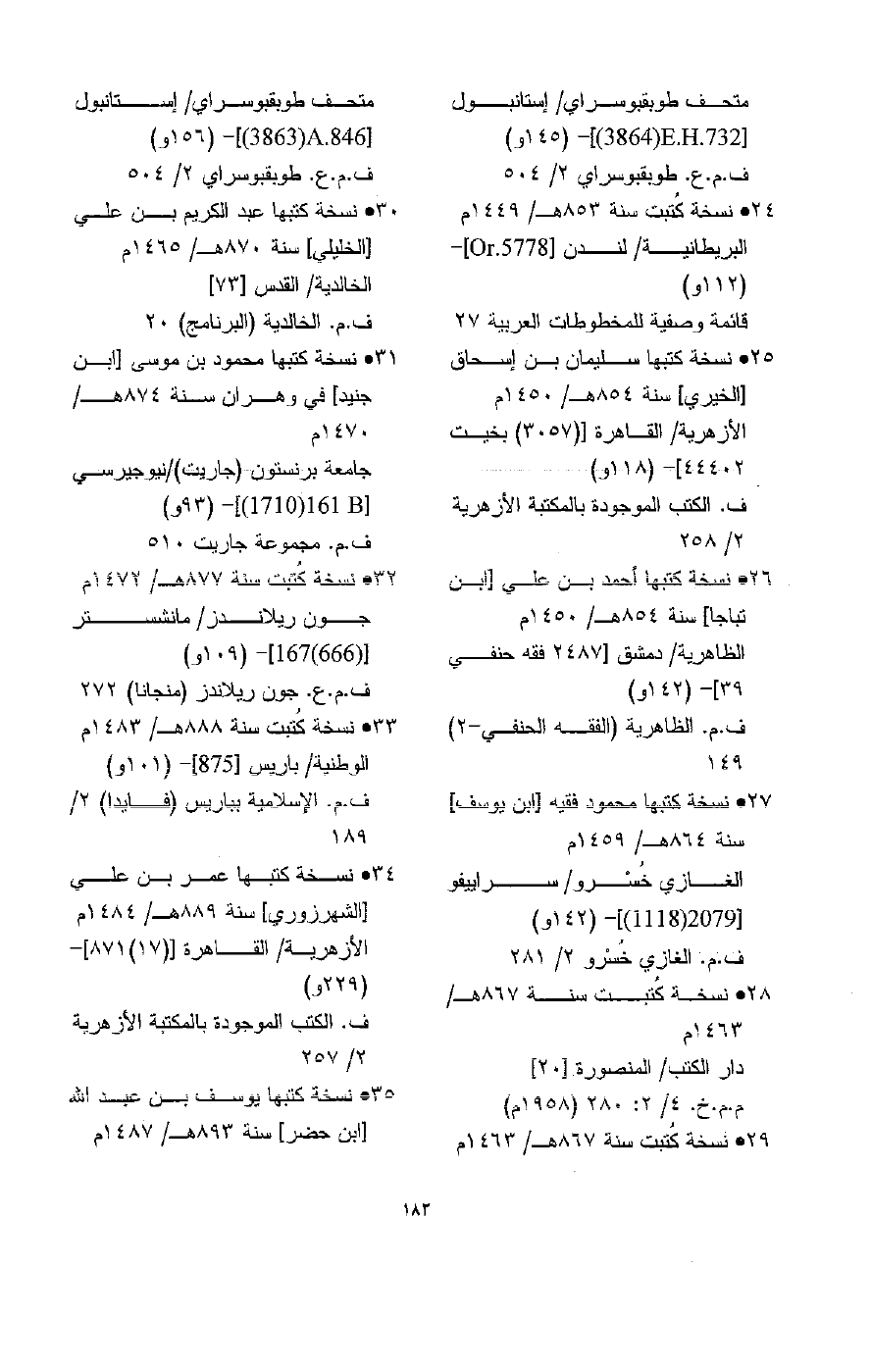 148( نسخة كتبها محمد بن حسين [المنصوري] سنة 1201هـ/ 1786م