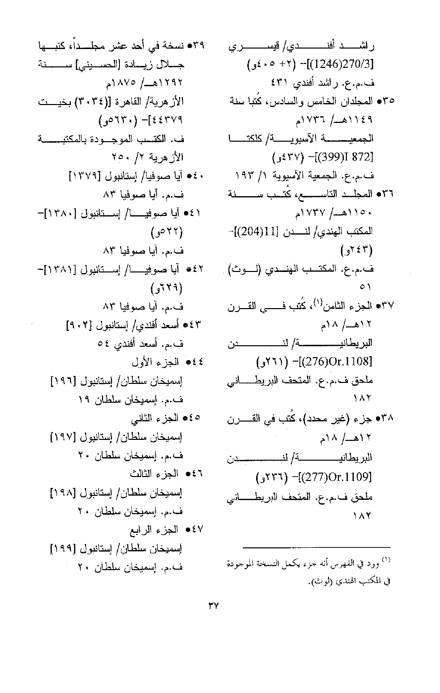 1 (( نسخة في خمسة عشر مجلداً، كُتب بعضها سنة 652هـ/ 1254م