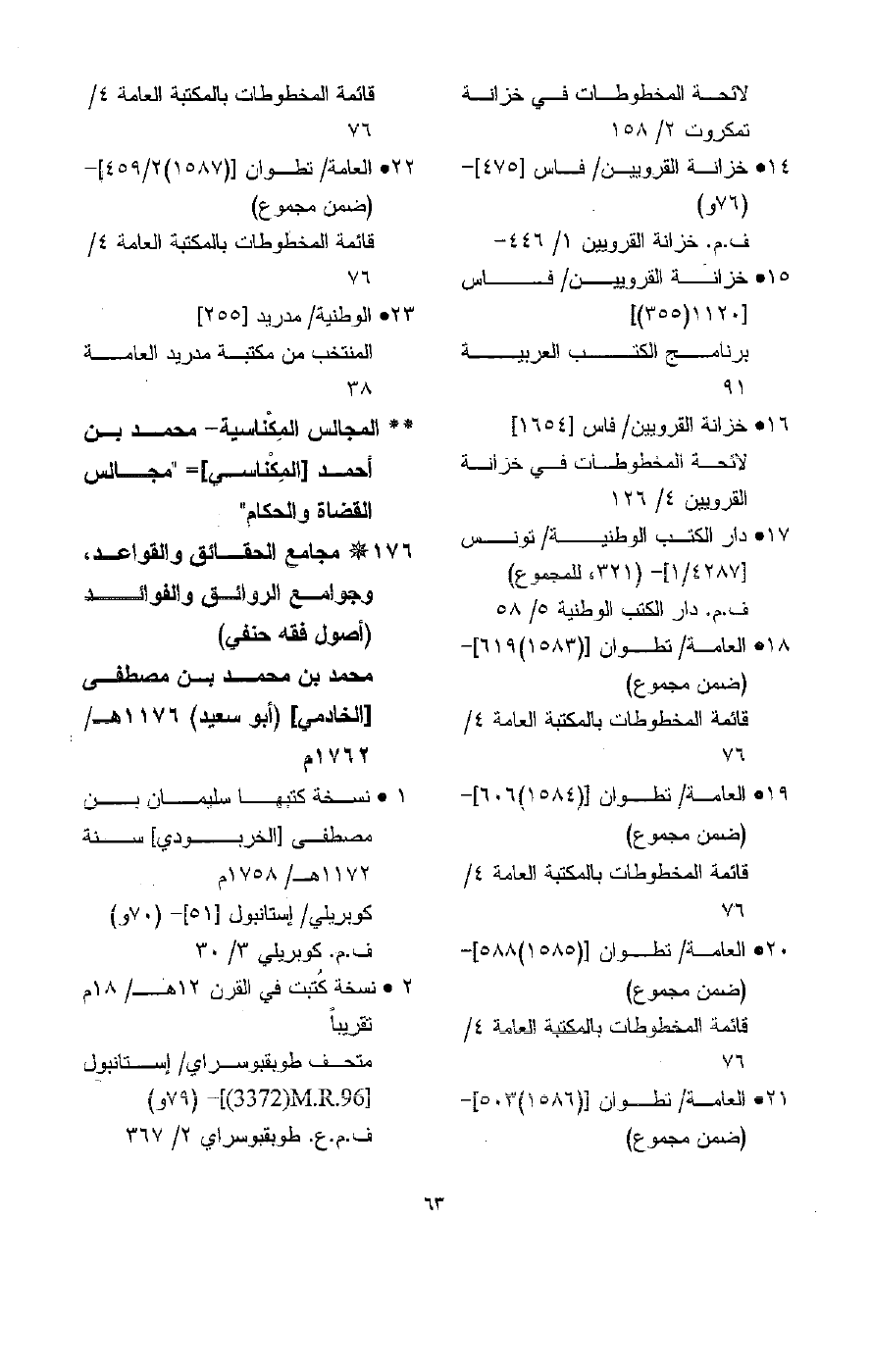 …قائمة المخطوطات بالمكتبة العامة 40/ 76