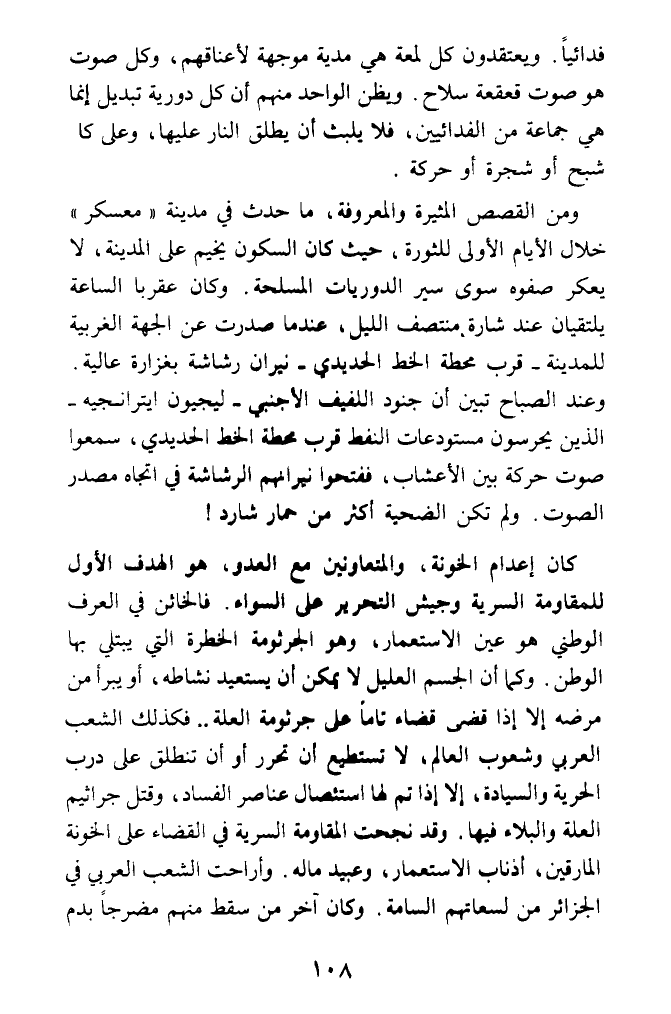 كان إعدام الخونة، والمتعاونين مع العدو، هو الهدف الأول للمقاومة السرية وجيش التحرير على السواء. فالخائن في العرف الوطني هو عين الاستعمار، وهو الجرثومة الخطرة التي ببتلي بها الوطن. وكما أن الجسم العليل لا يمكن أن يستعيد نشاطه، أو يبرأ من مرضه إلا اذا قضى قضاء تاما على جرثومة العلة .. فكذلك الشعب العربي وشعوب العالم، لا تستطيع أن تحرر أو أن تنطلق على درب الحرية والسيادة، إلا إذا تم لها استئصال عناصر الفساد، وقتل جراثيم العلة والبلاء فيها. وقد نجحت المقاومة السرية في القضاء على الخونة المارقين، أذناب الاستعمار، وعبيد ماله. وأراحت الشعب العربي في الجزائر من لسعاتهم السامة. وكان آخر من سقط منهم مضرجا بدم